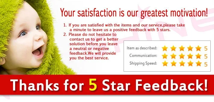 Ваши отзывы очень важны для нашего бизнеса. Когда сделка была закрыта, мы искренне приглашаем вас оставить положительные отзывы, если вы удовлетворены нашими товарами и обслуживанием. Мы оставим положительные отзывы всем нашим покупателям. Спасибо.