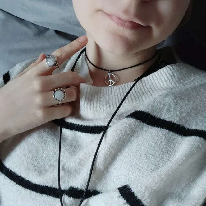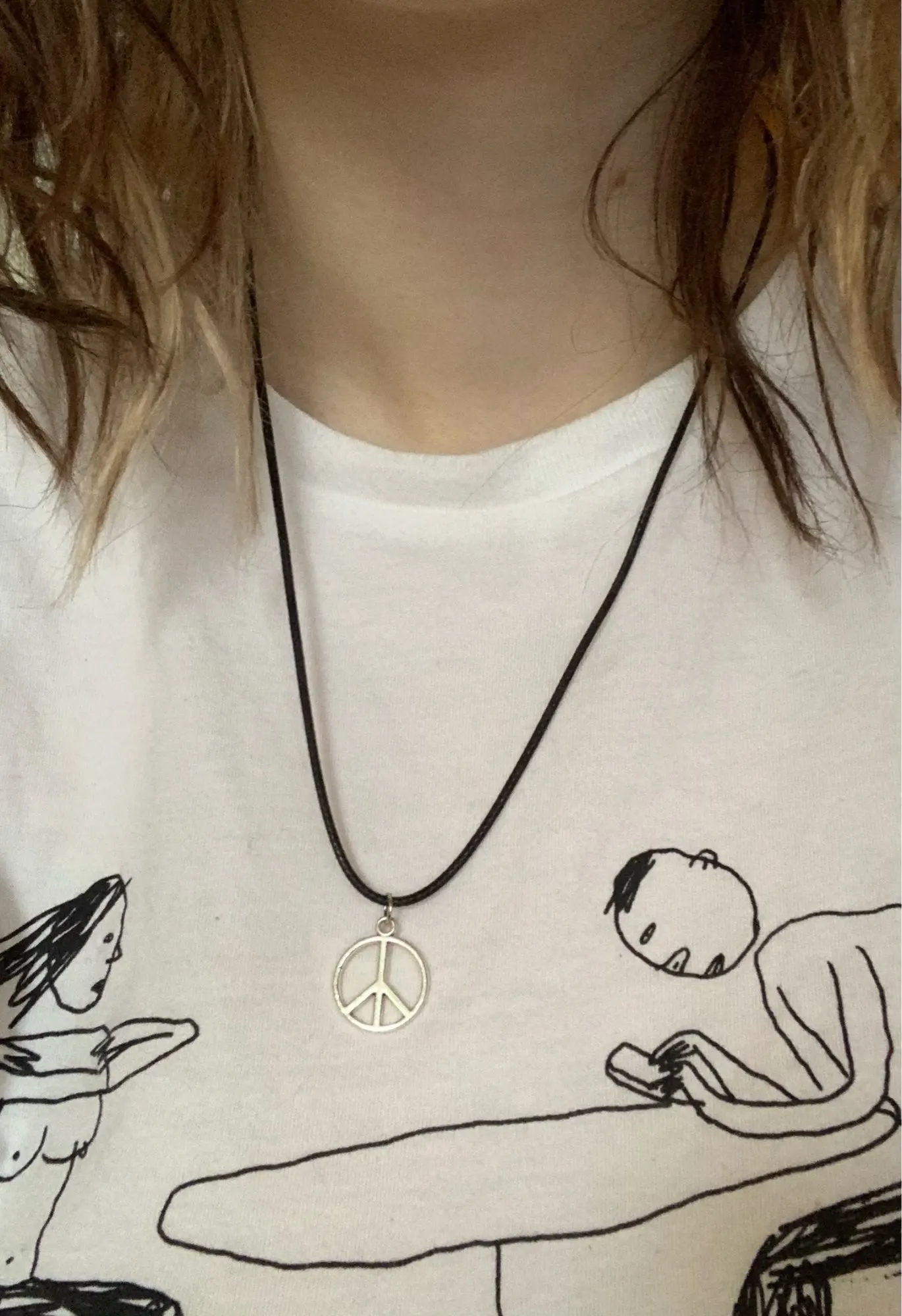 Новый Прочный черный из искусственной кожи знак мира кулон шнур Колье DIY Ожерелье Ретро серебряное тибетское в стиле бохо цвет