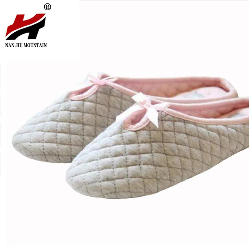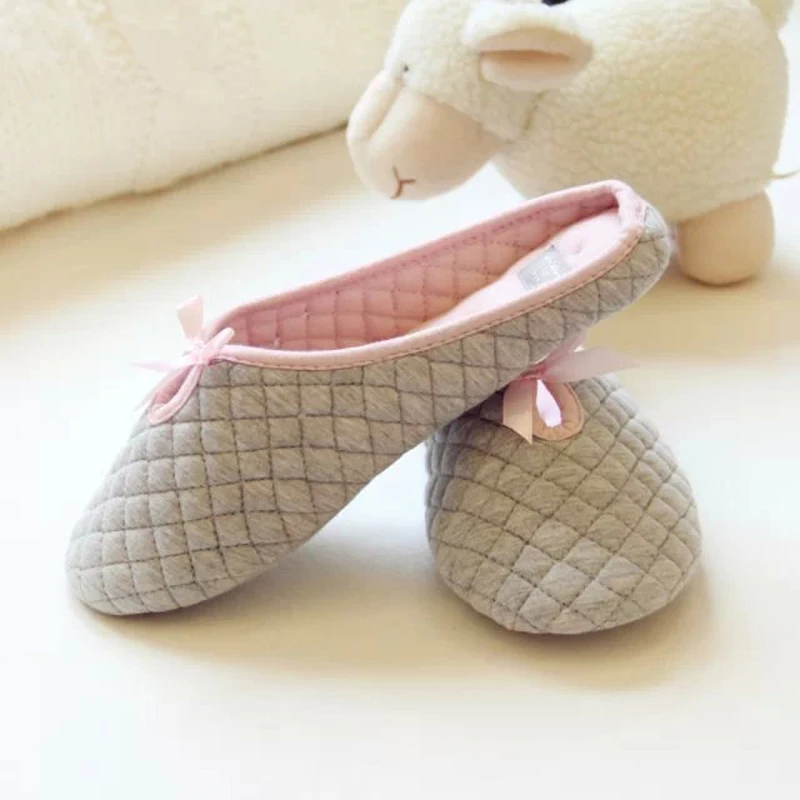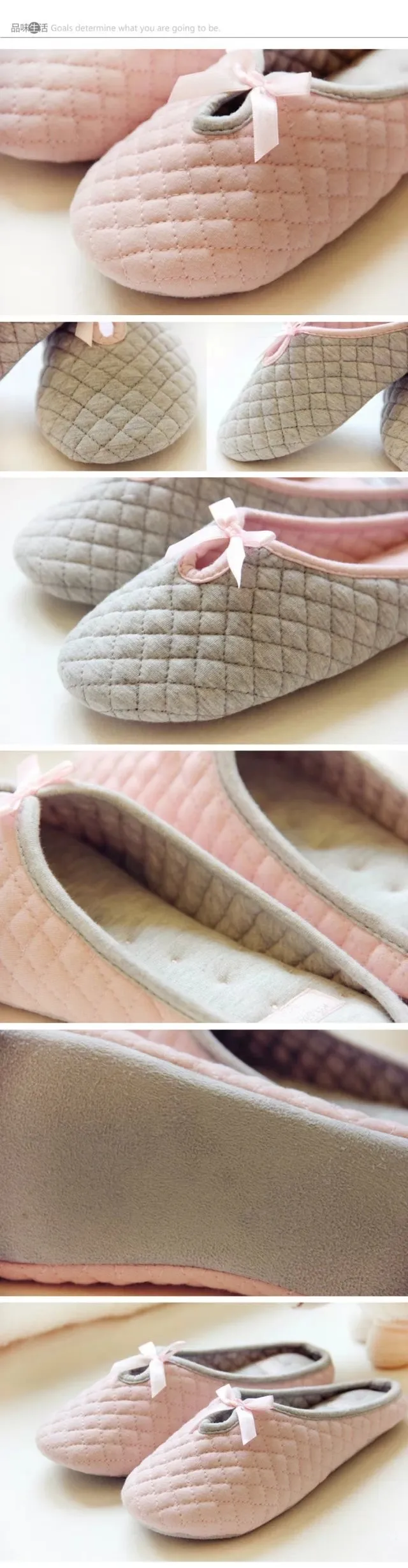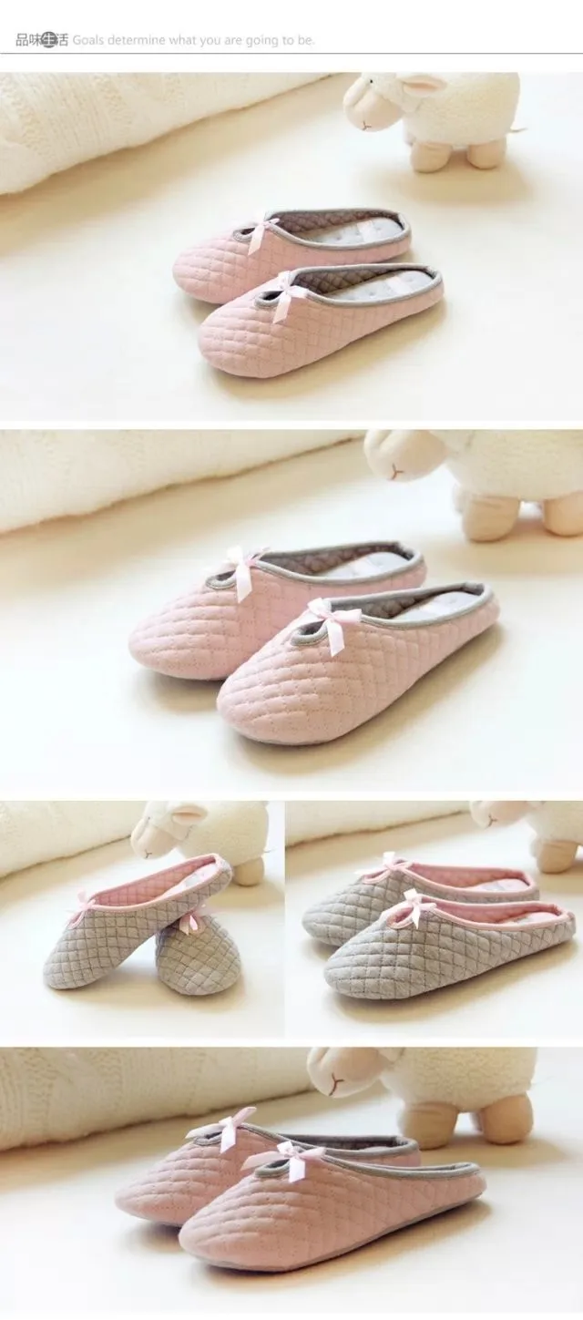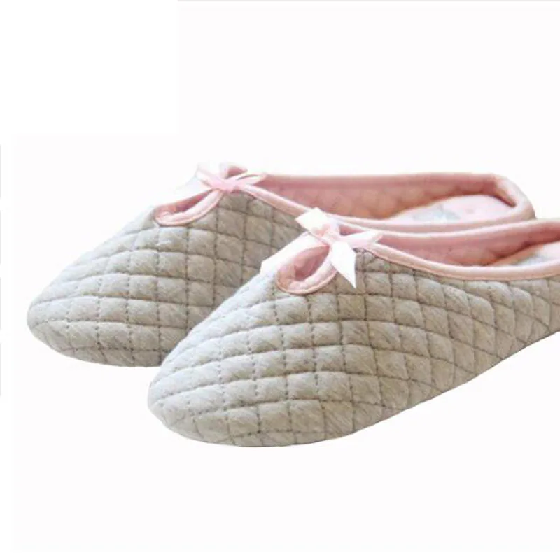 Милые зимние женские домашние шлёпанцы для ванной с бантиком домашние хлопковые тёплые туфли для гостей с мягкой подошвой обувь на низком каблуке Рождественский подарок