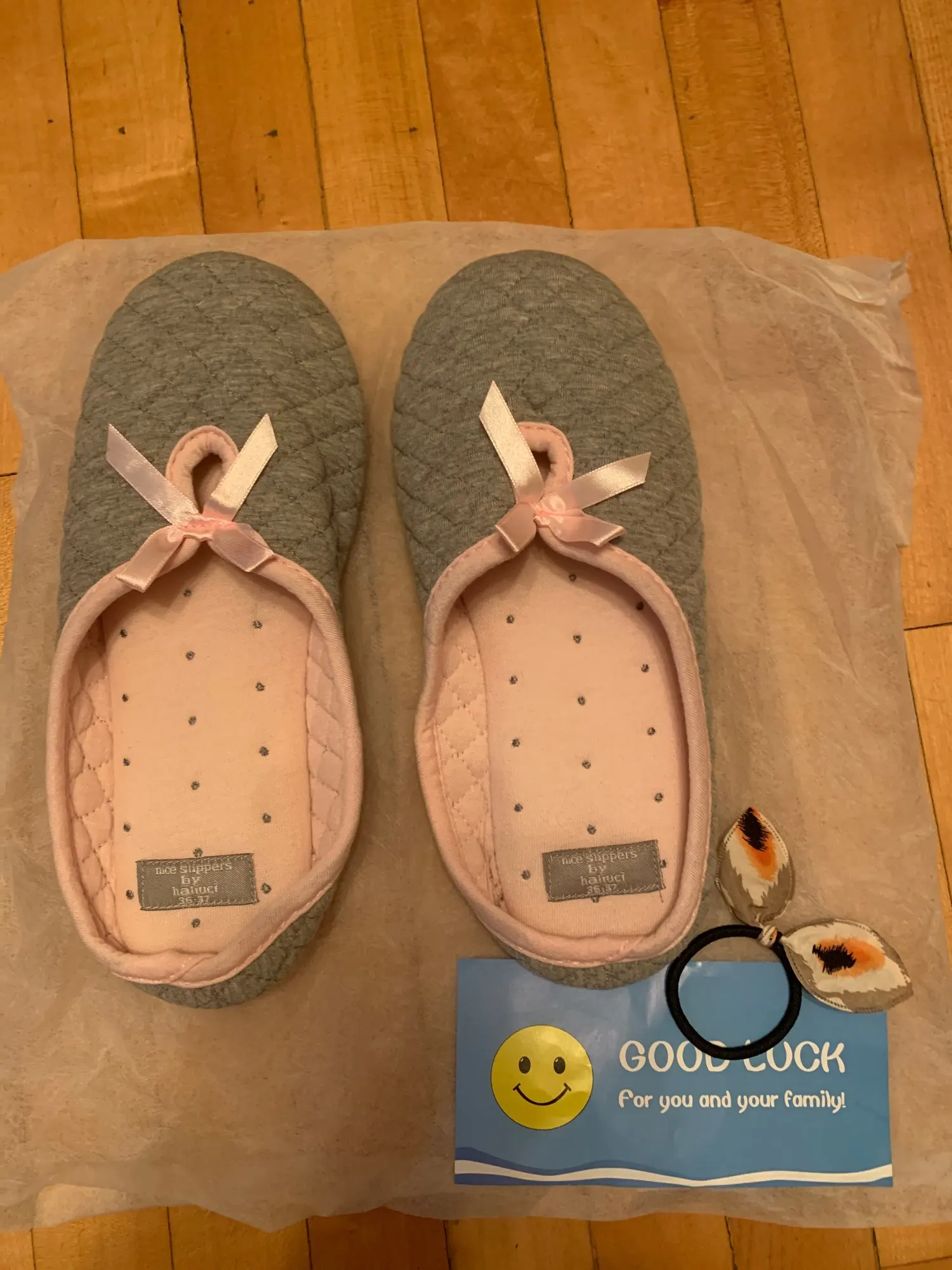 Получила тапочки очень быстро - заказываю не первый раз. Меня о них просят даже родственники - им покупаю. Очень хорошо сделаны.