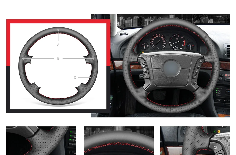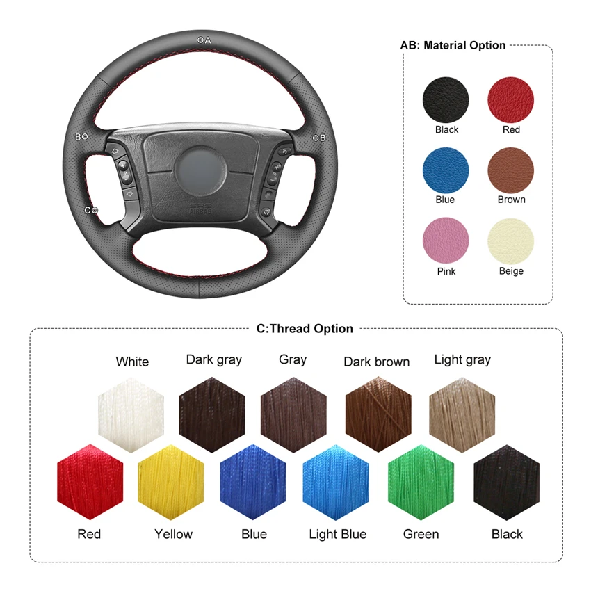 A: черная искусственная кожаB: черная перфорированная искусственная кожаC: Красная Нить