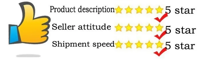 Удовлетворение потребностей клиентов очень важно для нас. Если вы удовлетворены нашей продукцией, пожалуйста, подтвердите Aliexpress и оставьте положительные отзывы при получении товара. Мы благодарим Вас за каждый положительный комментарий, который важен для нашего магазина. Если вы не удовлетворены нашей продукцией, пожалуйста, свяжитесь с нами как можно скорее, прежде чем оставить отрицательный или нервный отзывы. После этого мы дадим вам удовлетворительный ответ. Ваше удовлетворение является моей движущей силой, чтобы двигаться далеко.