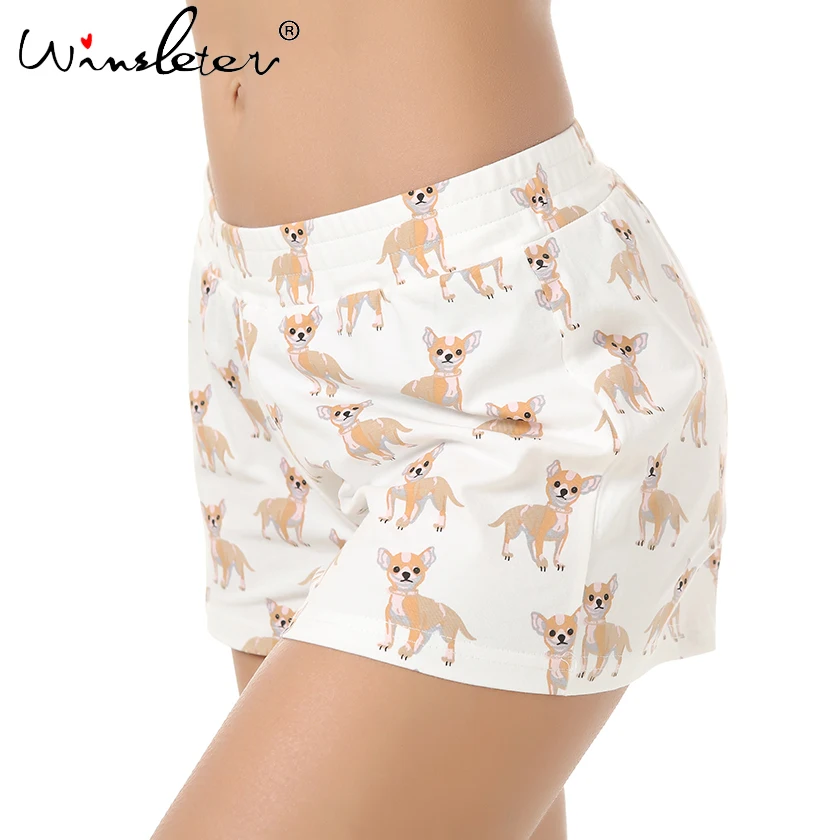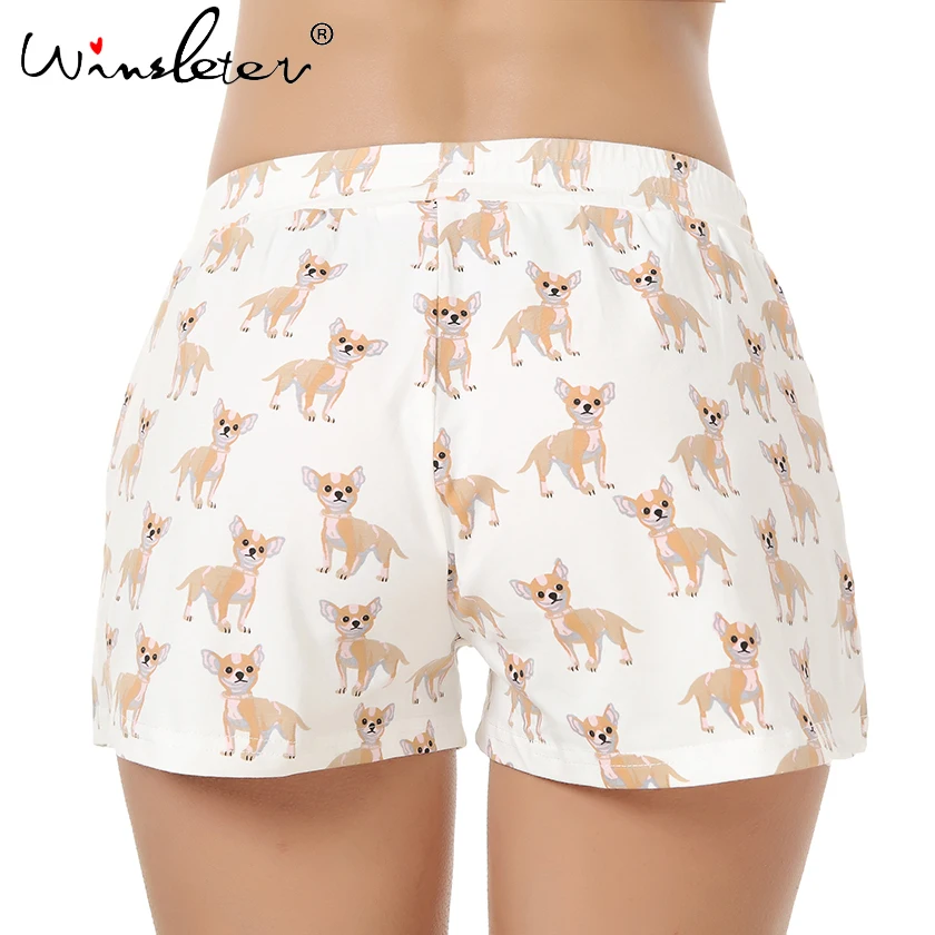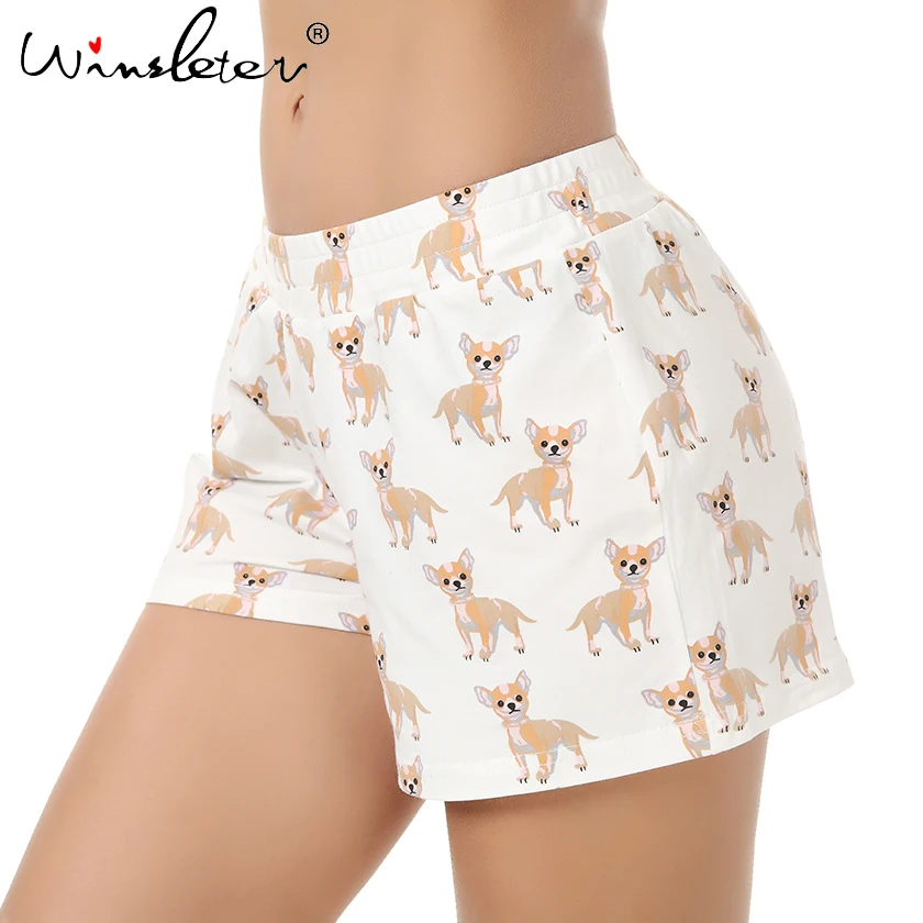 Женские хлопковые трикотажные шорты, милые шорты для сна, принт чихуахуа, пижама с принтом собаки, одежда для сна с эластичной резинкой на талии, одежда для сна, B61001