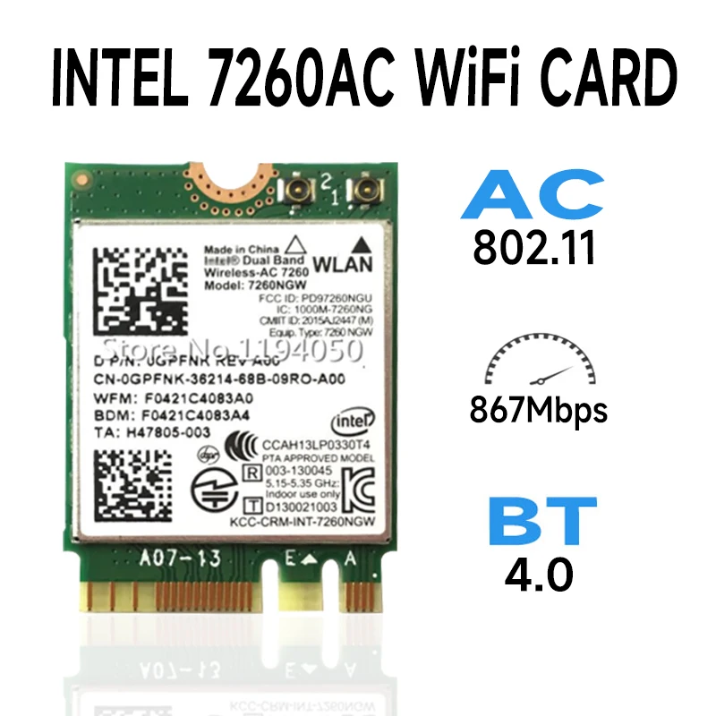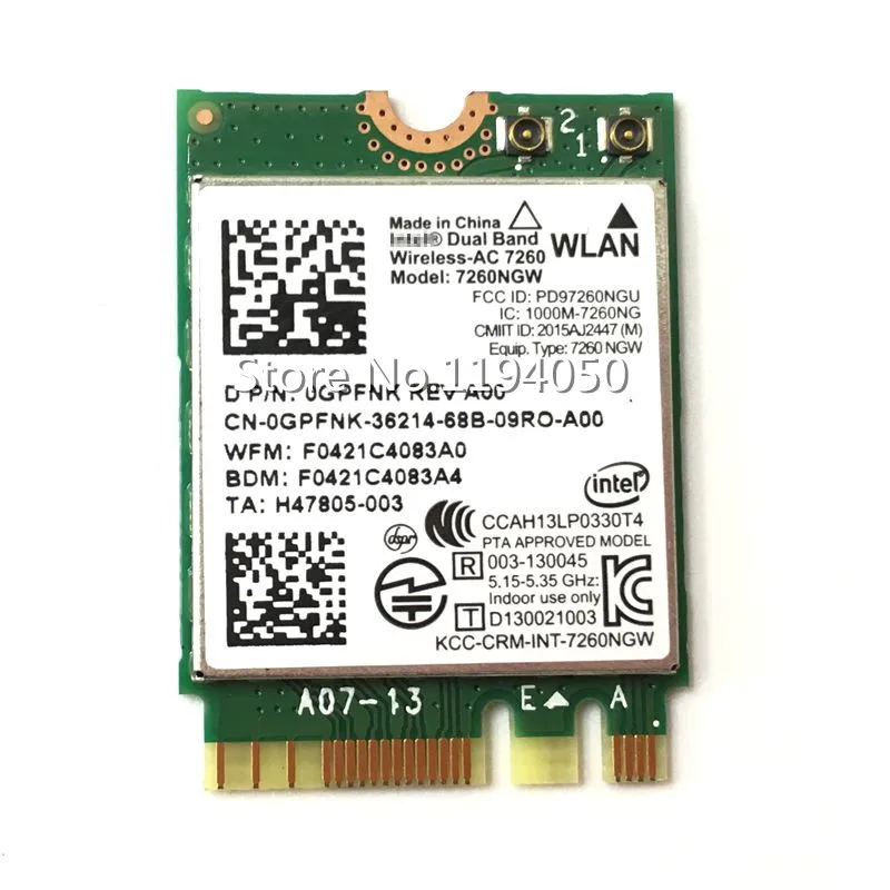 Двухдиапазонный процессор intel 7260NGW, Intel Wireless-AC 7260 7260NGW AC-7260 802.11ac, двухдиапазонный, 2x2 Wi-Fi + Bluetooth 4,0, intel 7260 AC