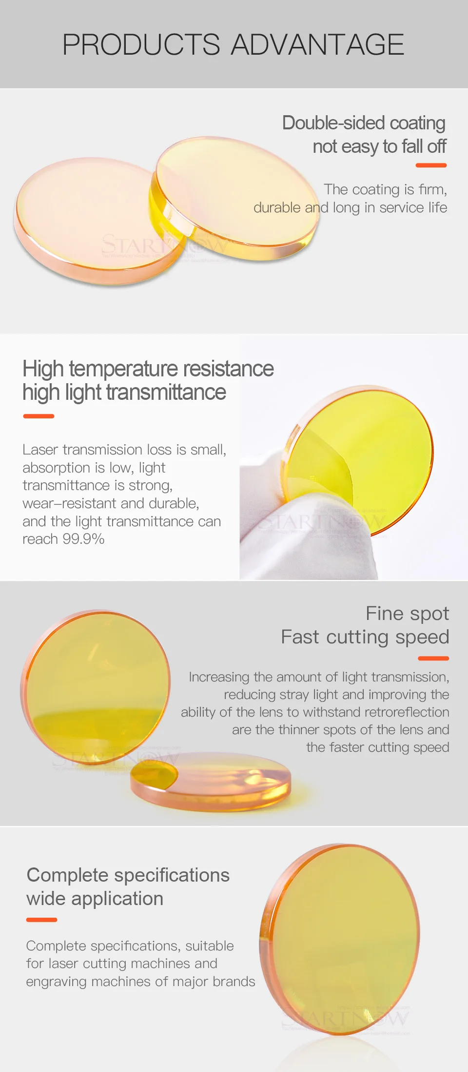Co2 объектив с лазерным фокусомМатериал:США CVD ZnSeДиаметр: 22, 25,4 (25), 27,94 (28), 38,1 ммФокусное расстояние: 50,8 63,5 76,2 101,6 127 190,5 ммЕсли вам нужны лазерные зеркала, пожалуйста, нажмите здесь(Нажмите здесь)