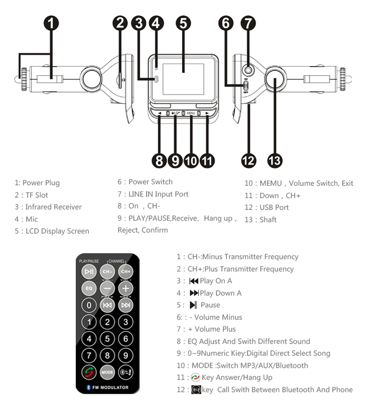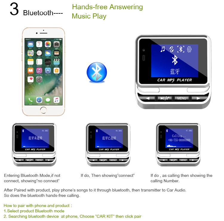 Многофункциональный FM-передатчик, Автомобильный MP3-плеер с громкой связью, Поддержка U-диска, TF-карты, автомобильная навигация, голосовая связь устройство для вещания