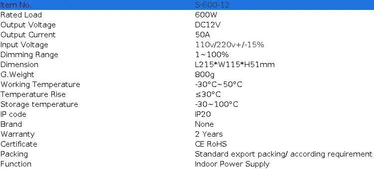 DC12V 50A 600 Вт Светодиодный источник питания (10 шт.)