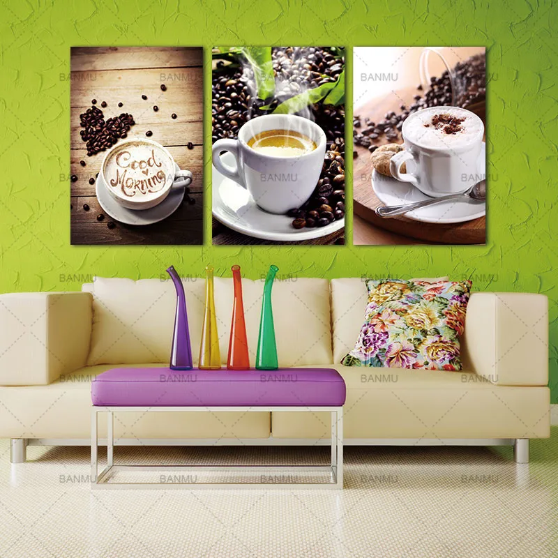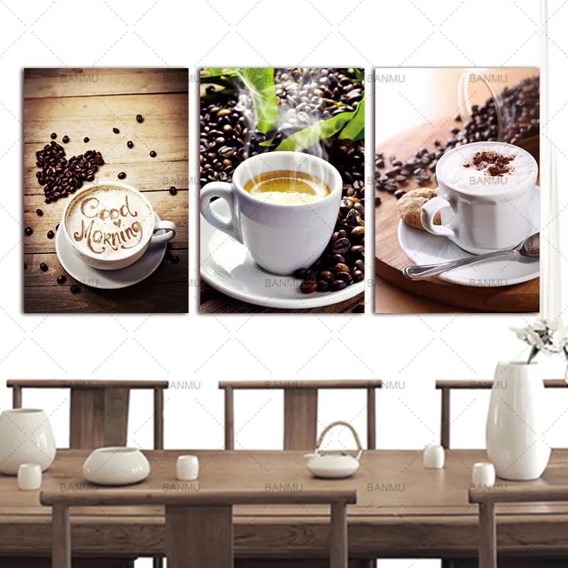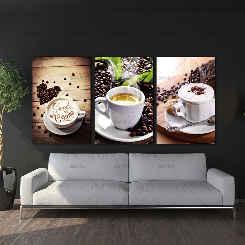 Картина на холсте, 3 панели, фотопринты, картина для кухни, кофе, Wall-Art