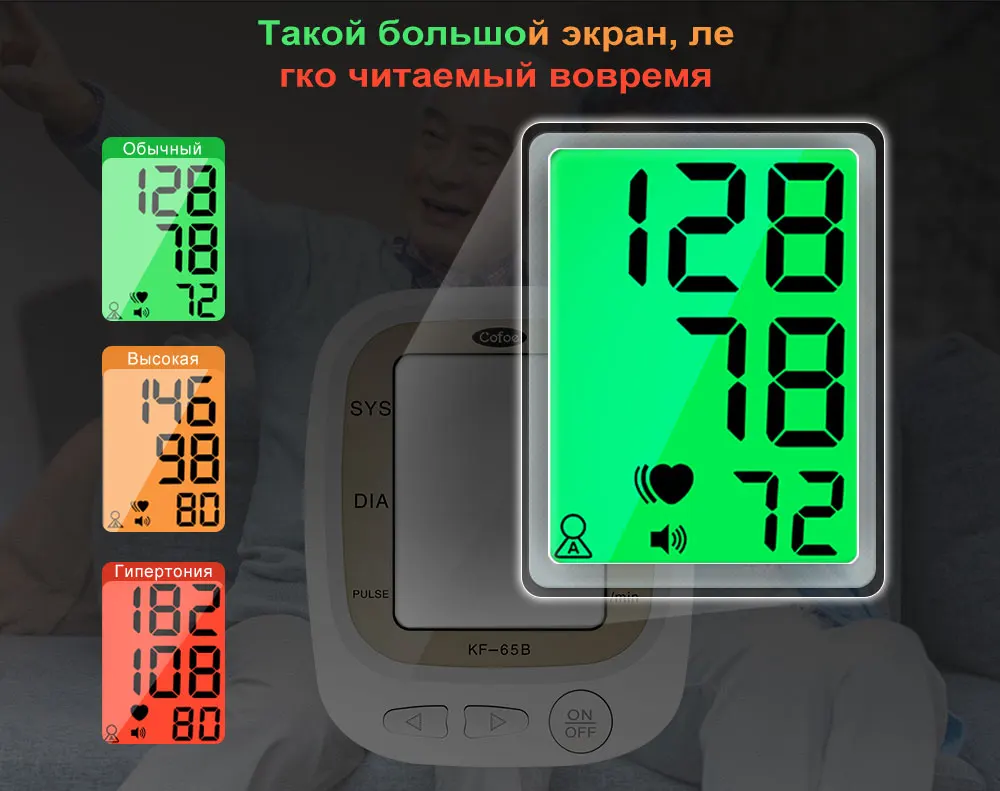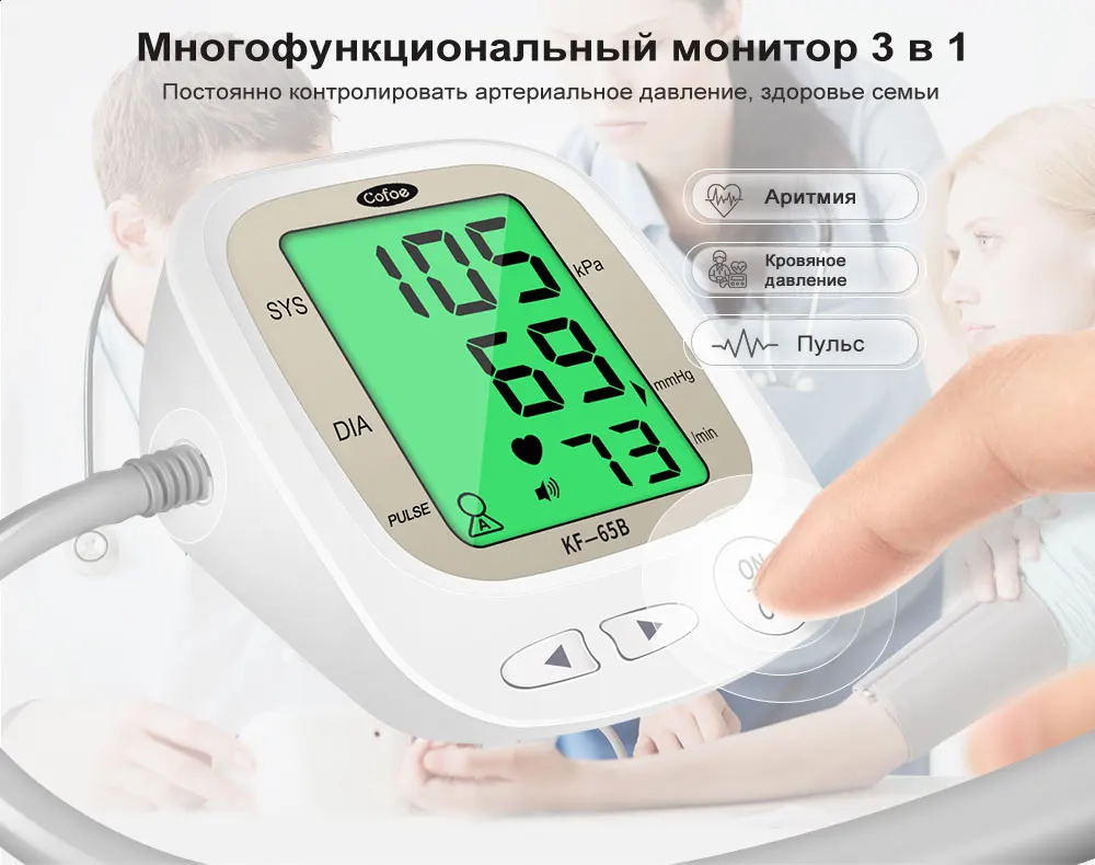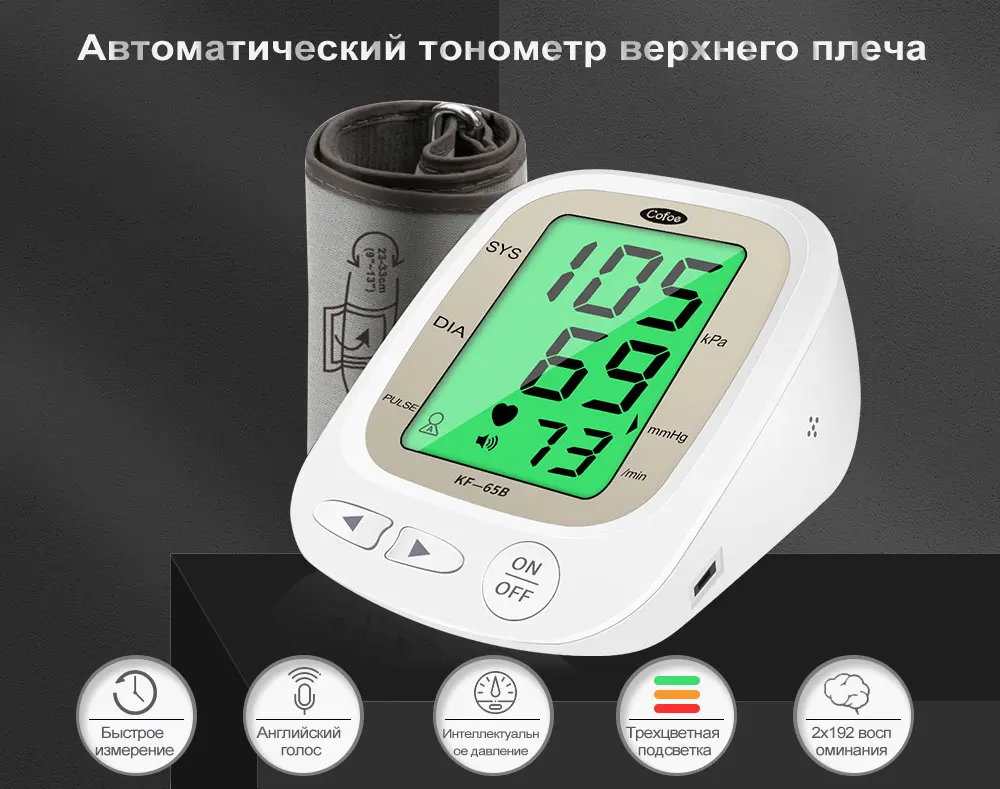 Тонометр Cofoe ArmAutomatic для измерения артериального давления, прибор для измерения артериального давления, сфигмоманометра, сердечного ритма, детектор аритмии