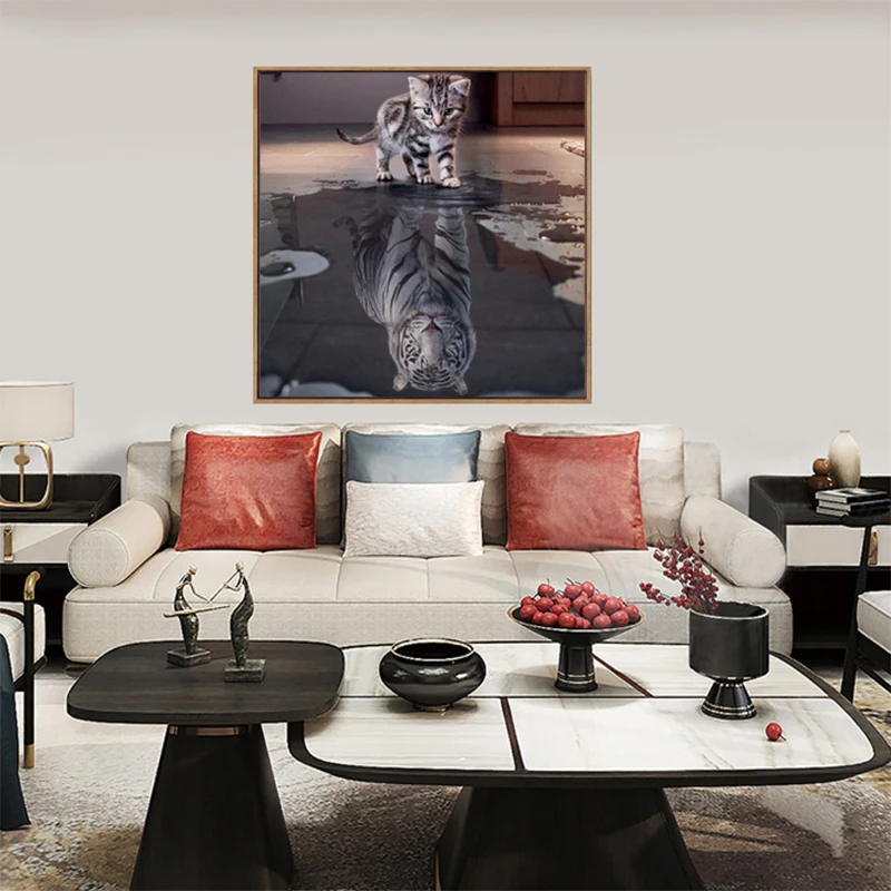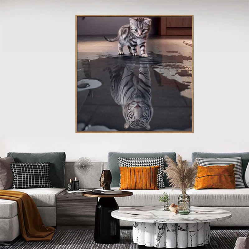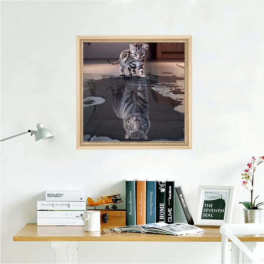 Полноразмерная Алмазная 5D картина Кот-Тигр, для творчества, 3D Рисование, стразы, живопись, вышивка, животные, Декор