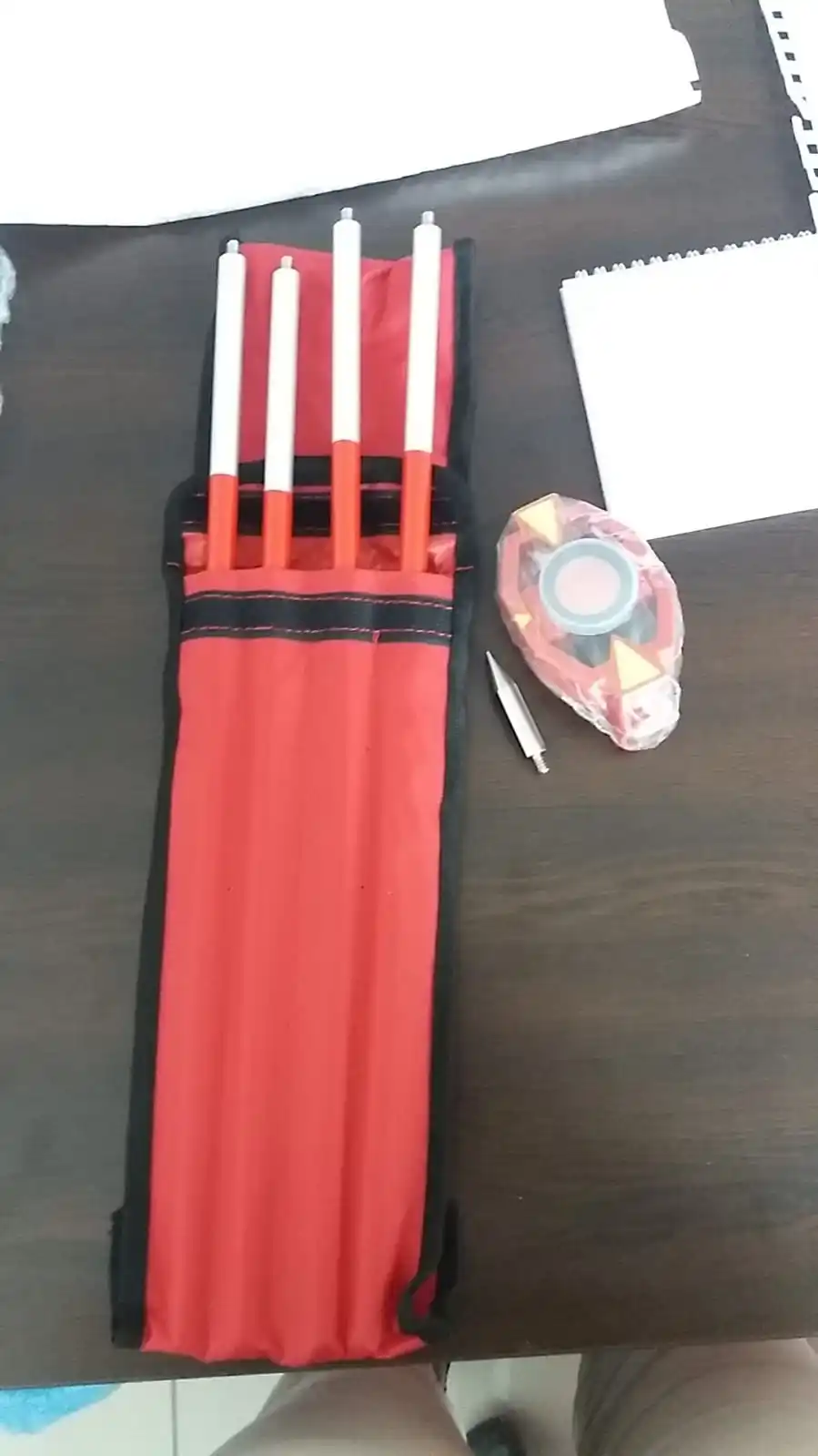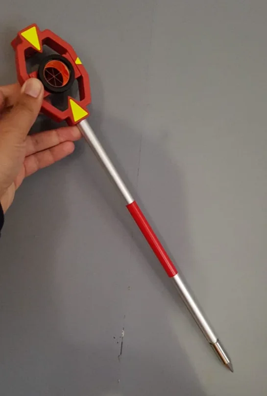 Призма хорошего качества, мне понравилась, вешка на первый взгляд сделана хорошо, пластик корпуса крепкий. Штанги по 30 см, наконечник 5 см, корпус 10 см, ось призмы посередине. При серии из 10 точных измерений, расхождения примерно 0.1 мм на расстоянии 20 метров от тахеометра, постоянную призмы пока не вычислил. Даже есть логотип поливайки))