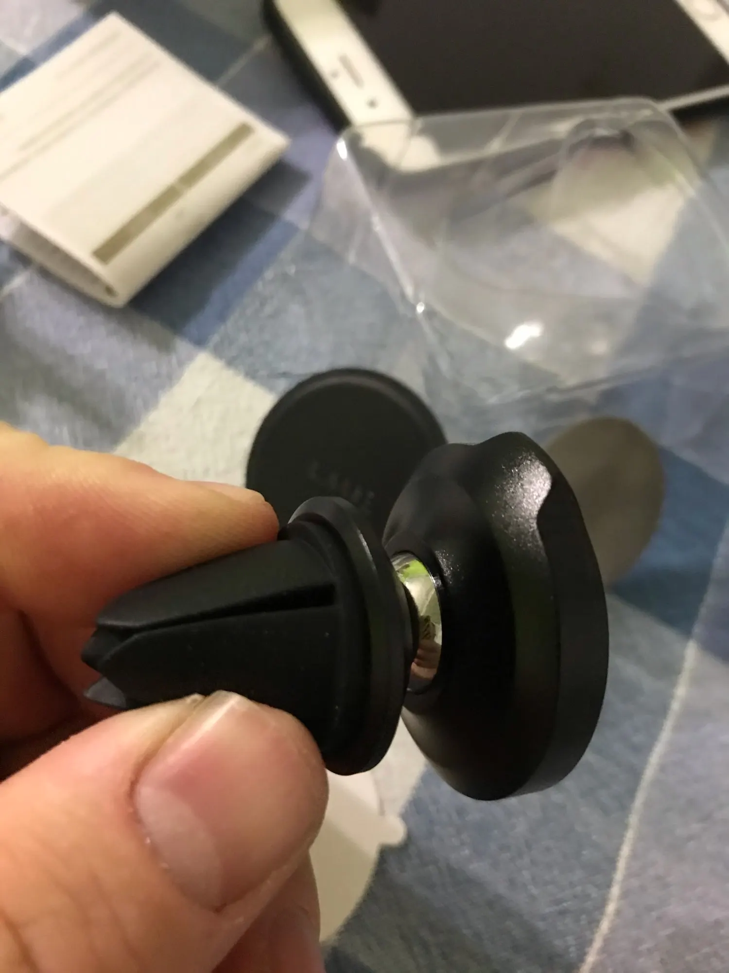 Товар пришел, спасибо продавцу, все как в описании, доставка не очень быстрая и со второй попытки, заказывали первый раз - магнит потерялся где-то, продавец вернул деньги. Так что заказали второй раз и успешно. В комплекте есть специальное магнитное кольцо для телефонов из пластика, просто вставили его в чехол и магнит держит телефон из пластика через чехол