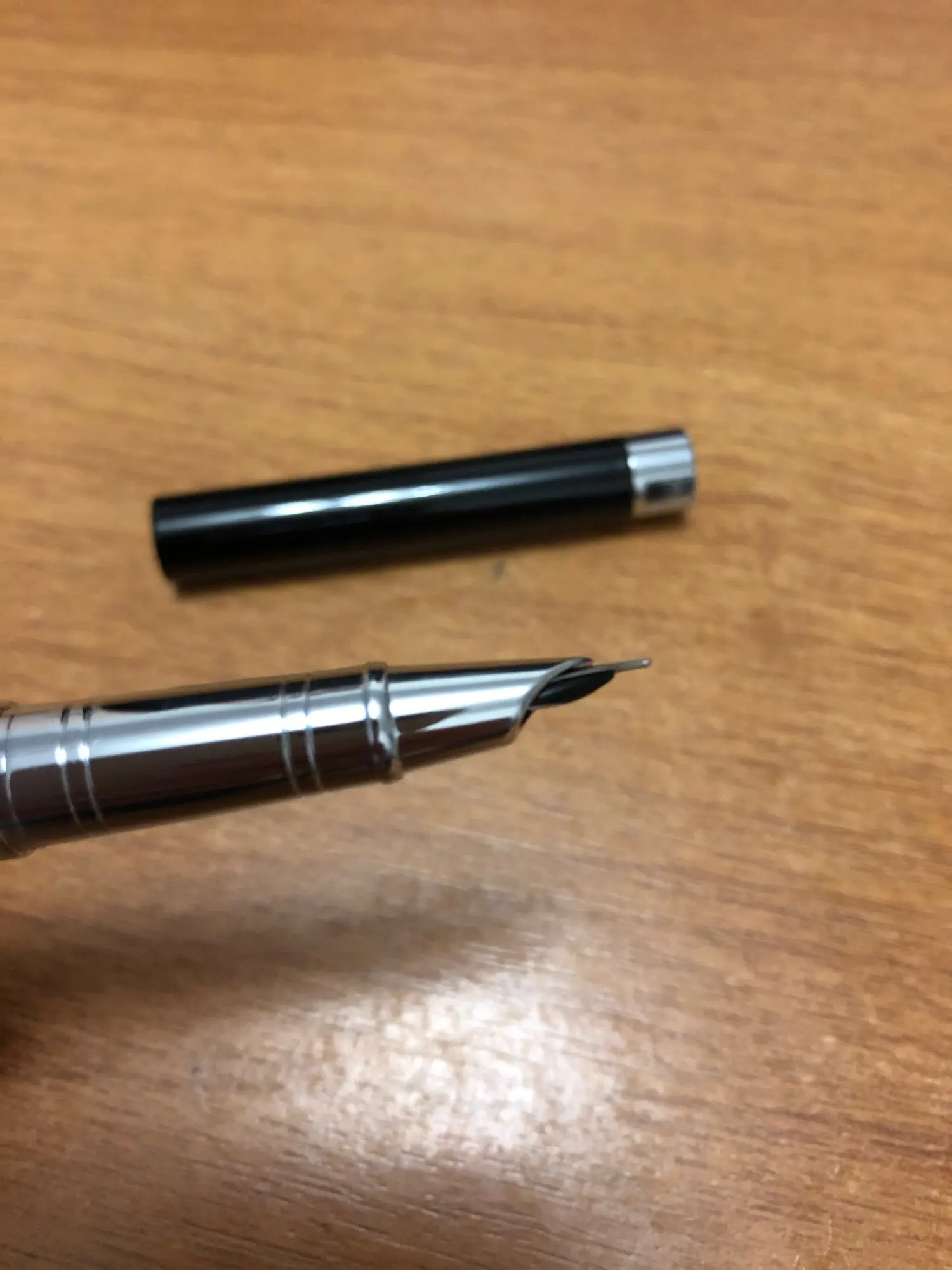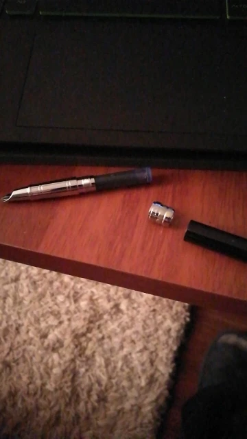 Чернила Pilot, черные, растекаются по бумаге, как вода. Перо далеко не EF. Пишет ужасно. Мне, похоже, попался брак