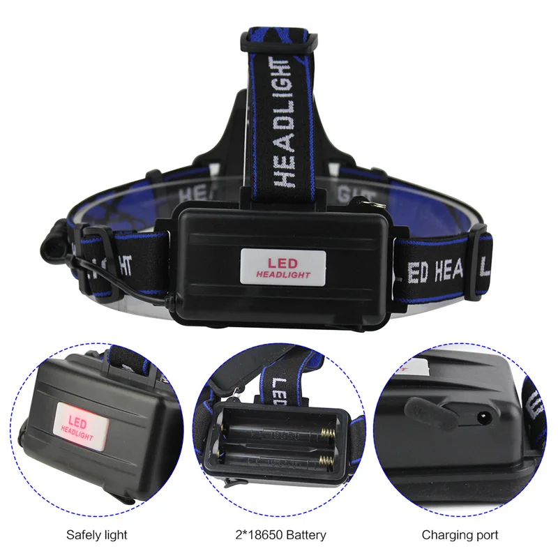Светодиодный налобный фонасветильник T6L2V6, 3 режима, масштабируемый, водонепроницаемый, супер яркий светильник для кемпинга, рыбалки, работает от 2 батареек 18650