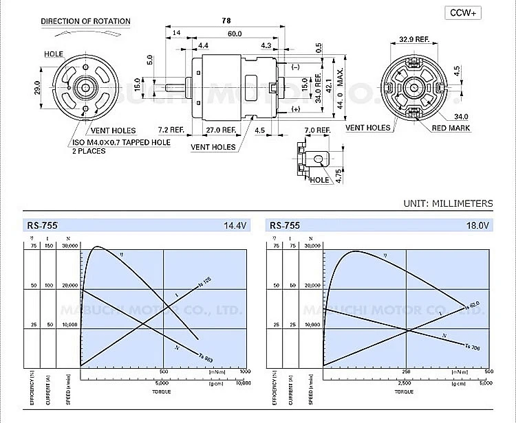 MABUCHI RS-755WC-9013 755 электрическая сверлильная пила высокоскоростной двигатель постоянного тока 12 В 14,4 В 18 в 20200 обмин Номинальная мощность 204 Вт