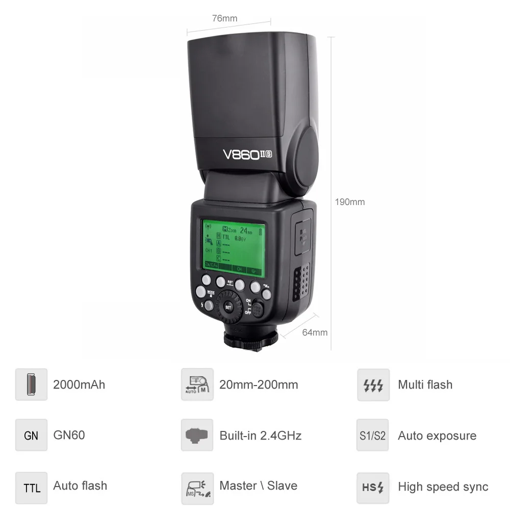 Внешняя вспышка Godox V860II-S, вспышка V860II-C, 860II-N, V860II-F, V860II-O, GN60, TTL, HSS для Sony, Nikon, Canon, Olympus, Fuji, литий-ионная батаеря