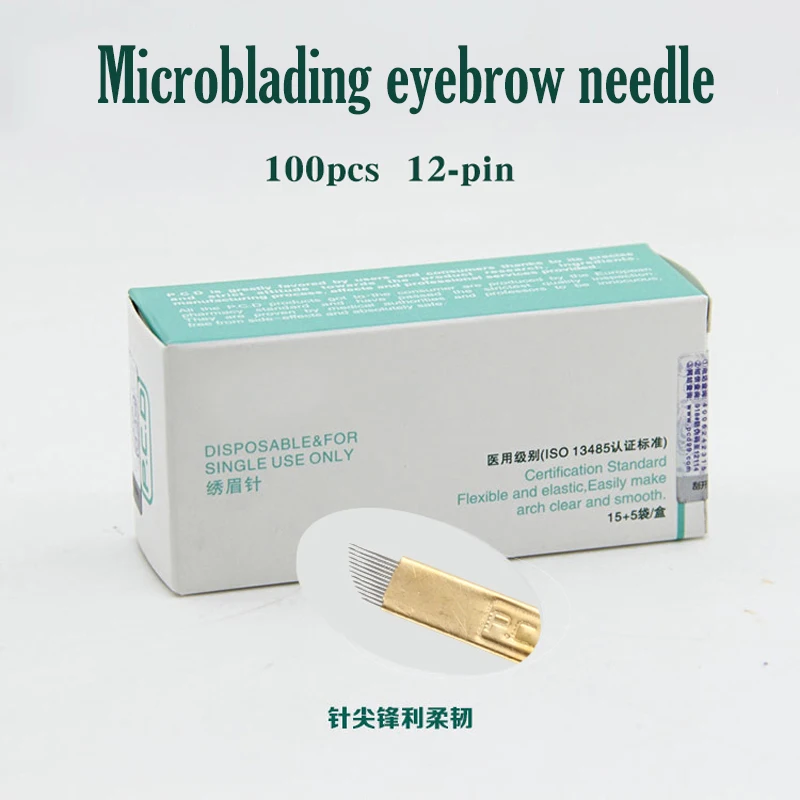 100 шт. 12 Pin Перманентный макияж бровей Тату лезвия микроблейдинг иглы для 3D вышивки ручная тату-машинка