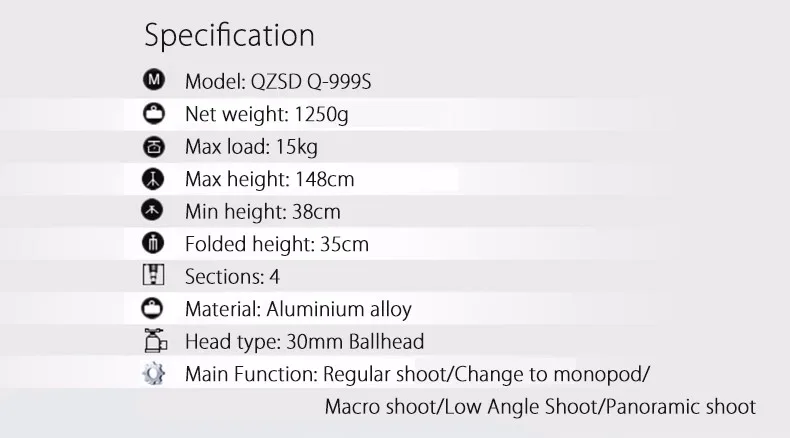 Профессиональный портативный алюминиевый штатив для фотоаппарата Beike QZSD Q999S