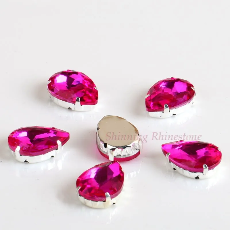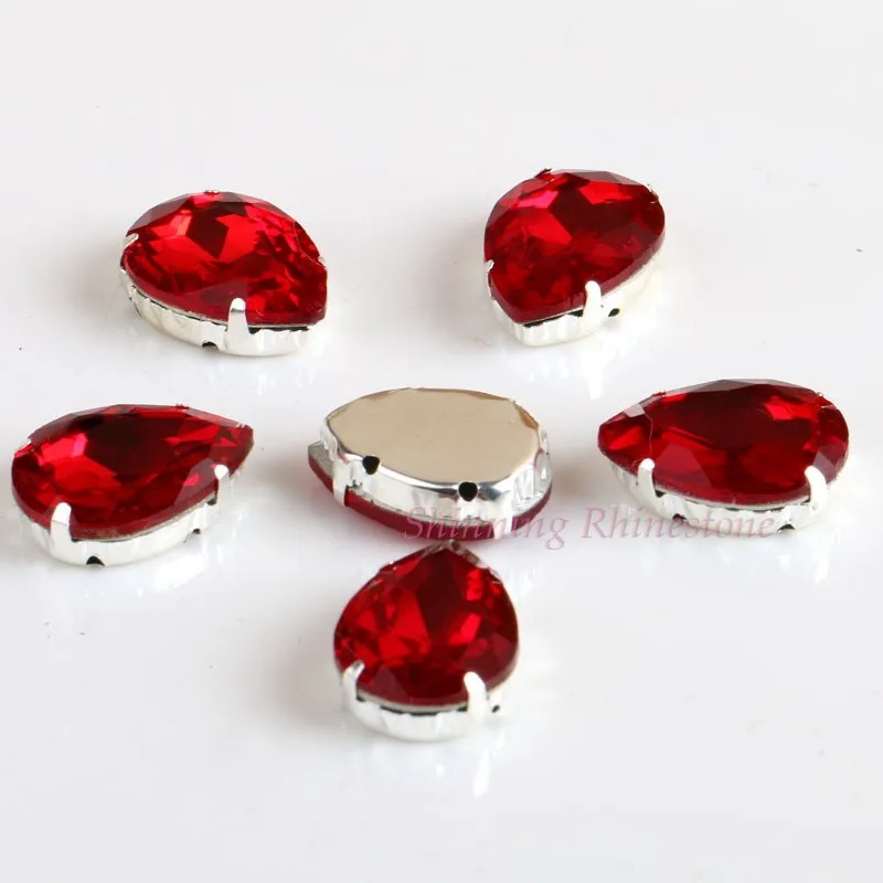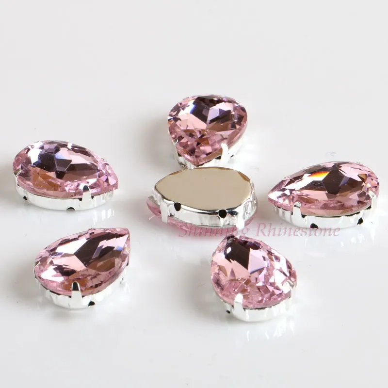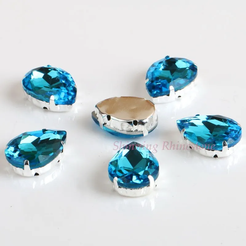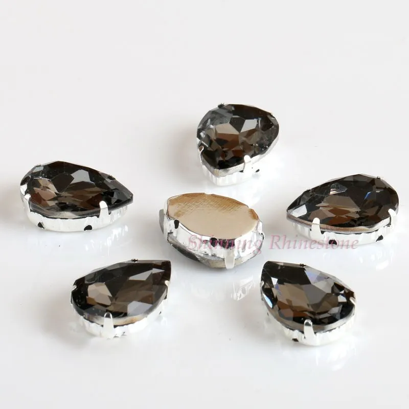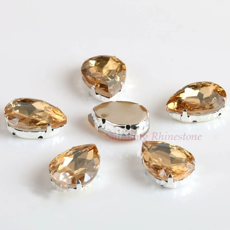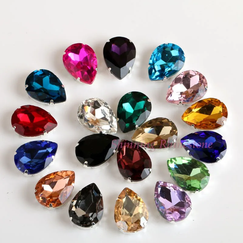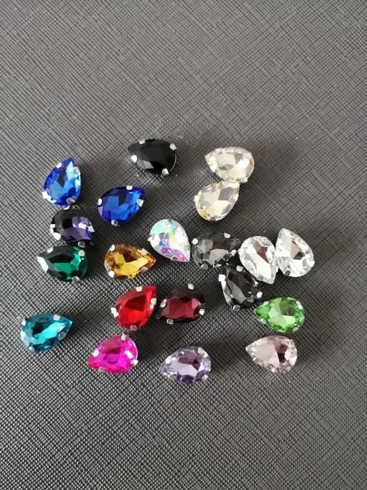 Стеклянные стразы в форме капли, с кристаллами в форме капли, с металлической основой, СТРАЗА под камень алмаза, свадебное украшение