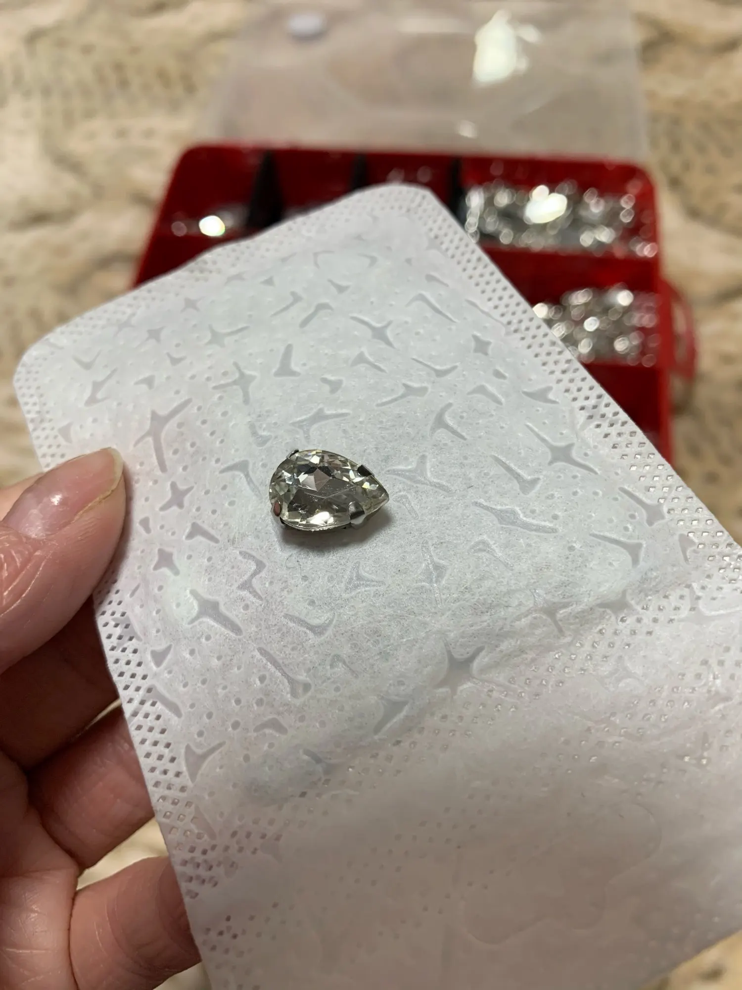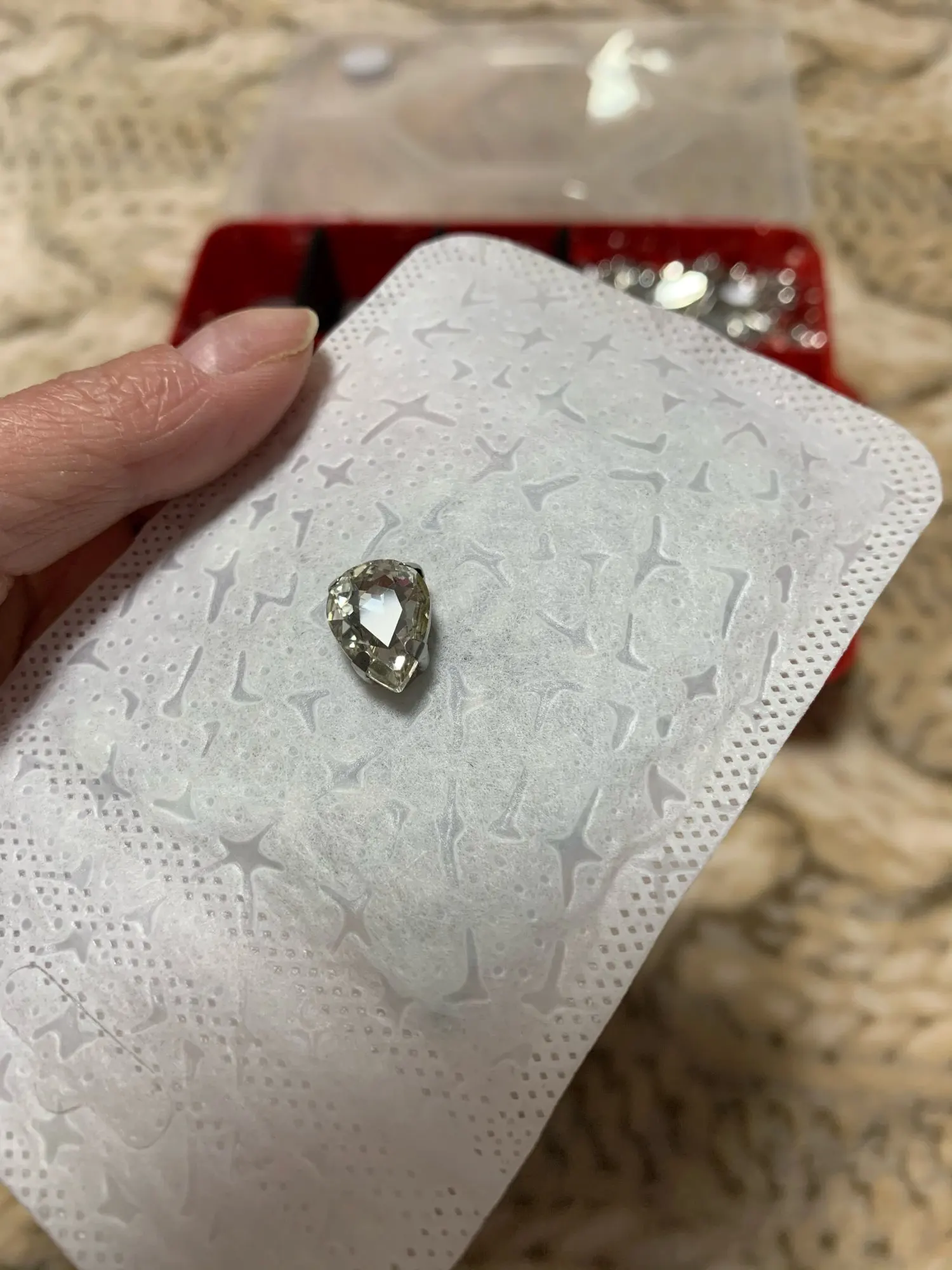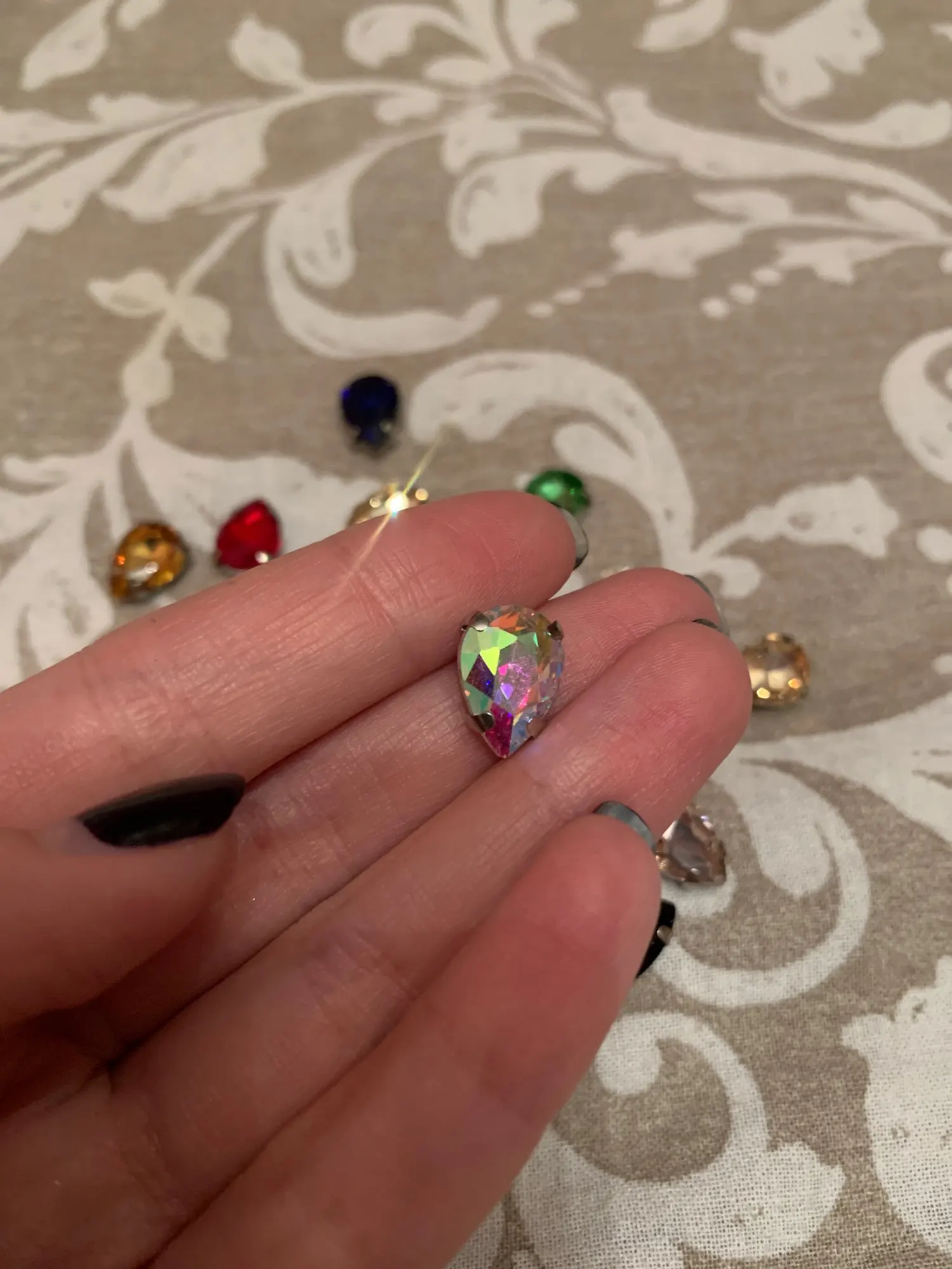 Капли получила, думала они больше размером, но в рукаделии и эти пригодятся, спасибо продавцу, все камушки целые.