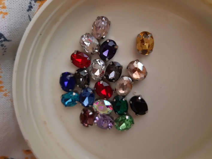 стразы хорошие, в металлическом обрамлении, можно пришить. красивые грани, блестят.