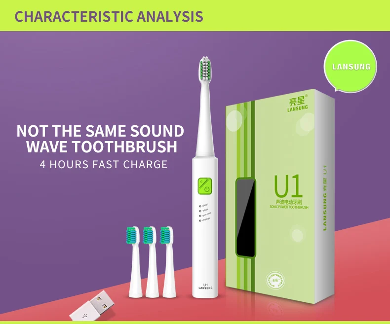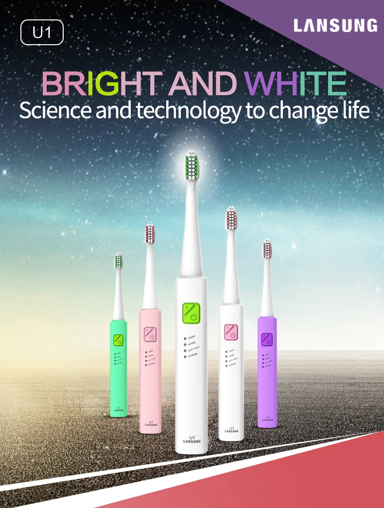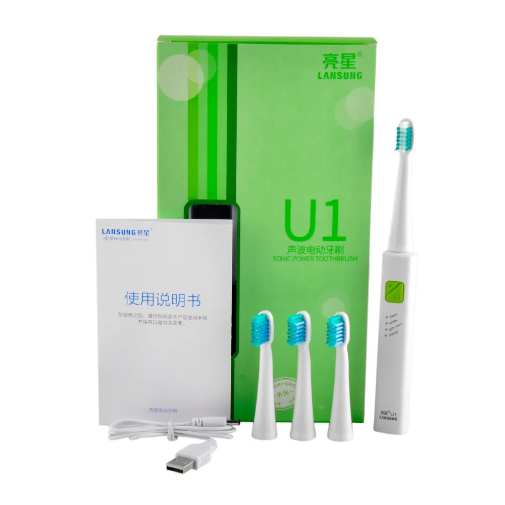 LANSUNG ультразвуковая звуковая электрическая зубная щетка перезаряжаемая зубная щетка с 4 сменными головками U1