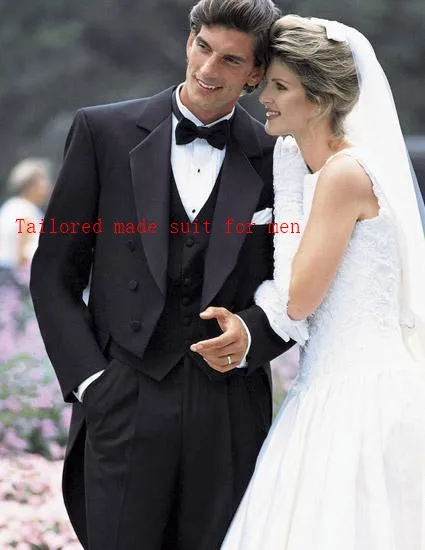 Смокинг для жениха с лацканами черного цвета на заказ, мужские костюмы для свадебной вечеринки, Мужские костюмы (пиджак + брюки + жилет + галстук)