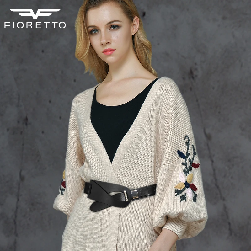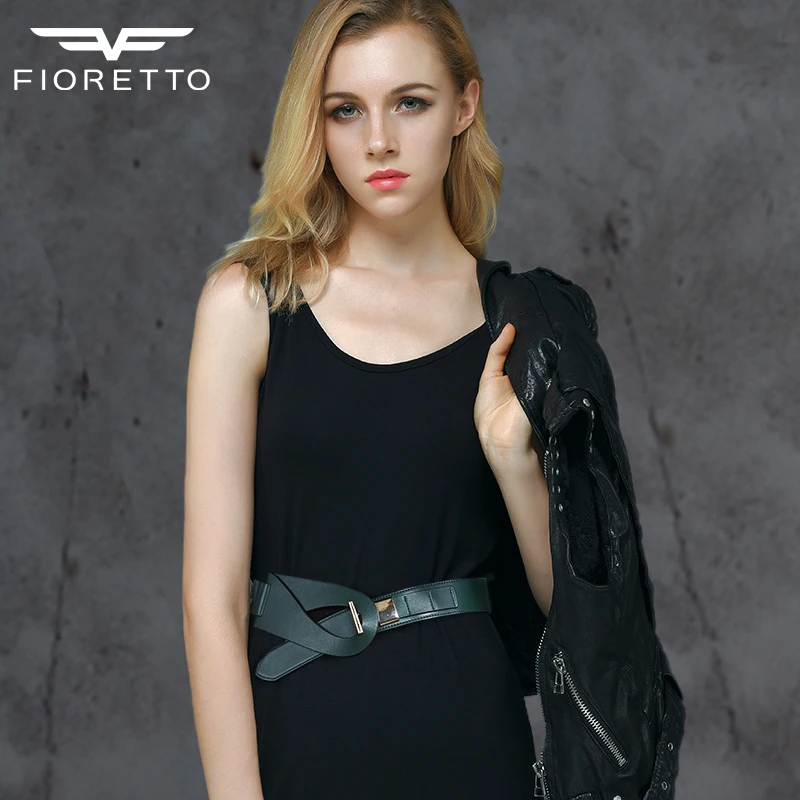 Ремень Fioretto женский кожаный, Модный брендовый пояс для платьев, эластичный широкий пояс в стиле панк, черный коричневый
