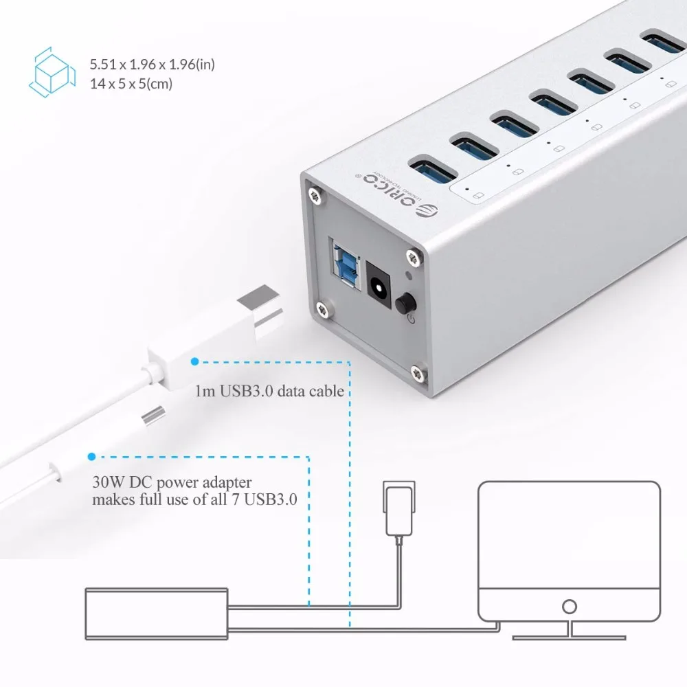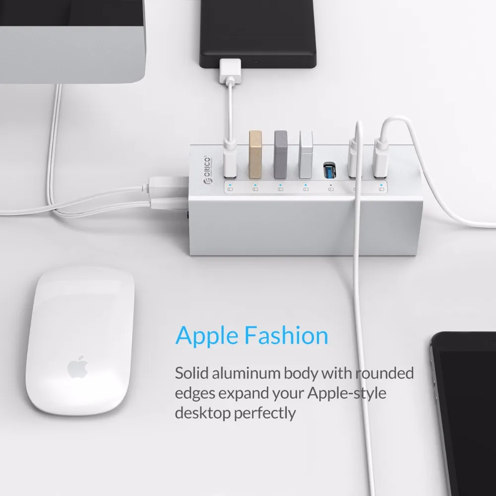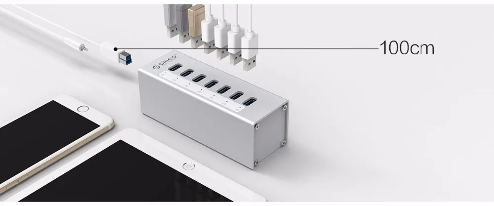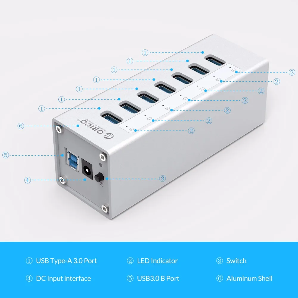 Концентратор ORICO A3H7, высокоскоростной алюминиевый разветвитель с 7 портами USB 3,0, аксессуары для ПК, хаб с портом питания