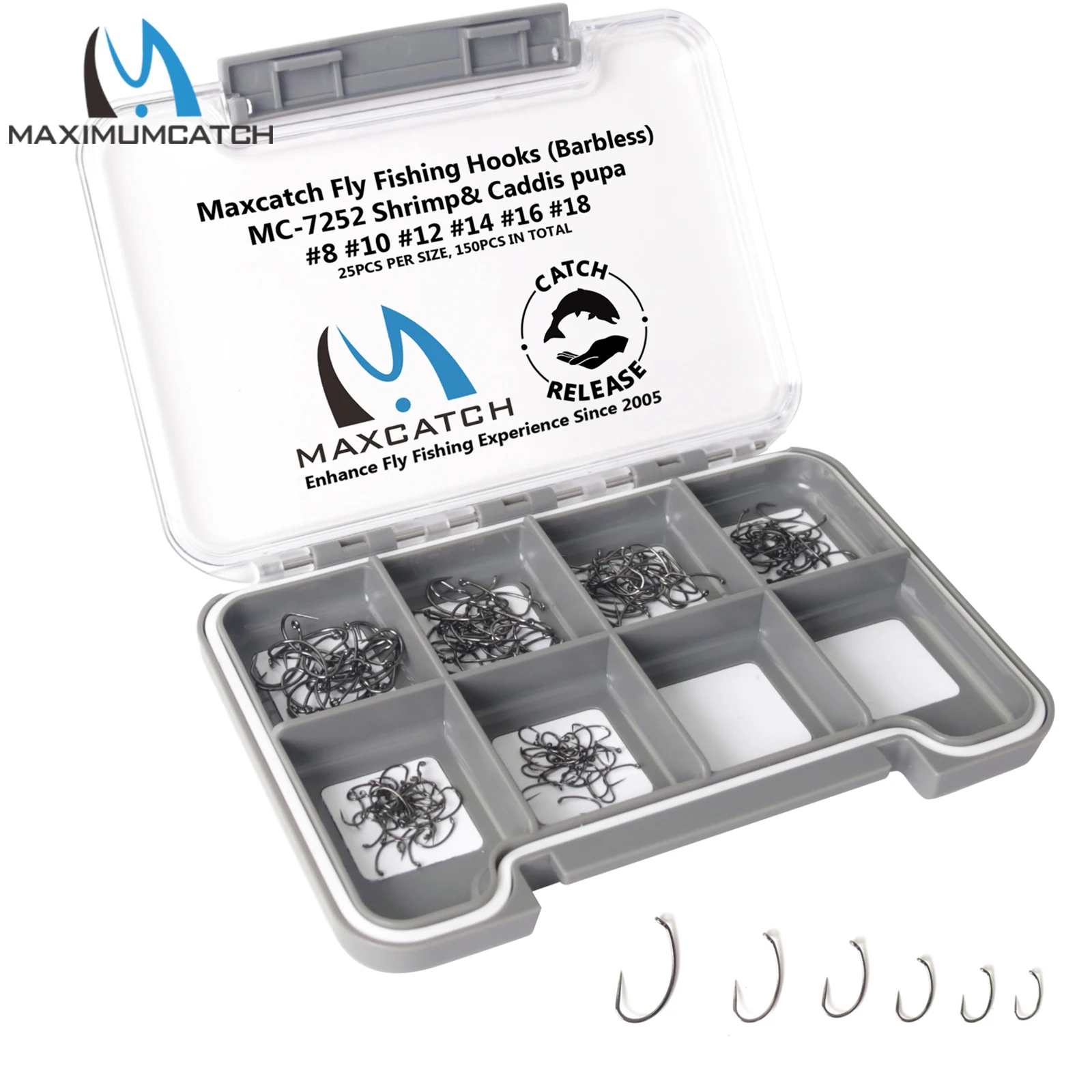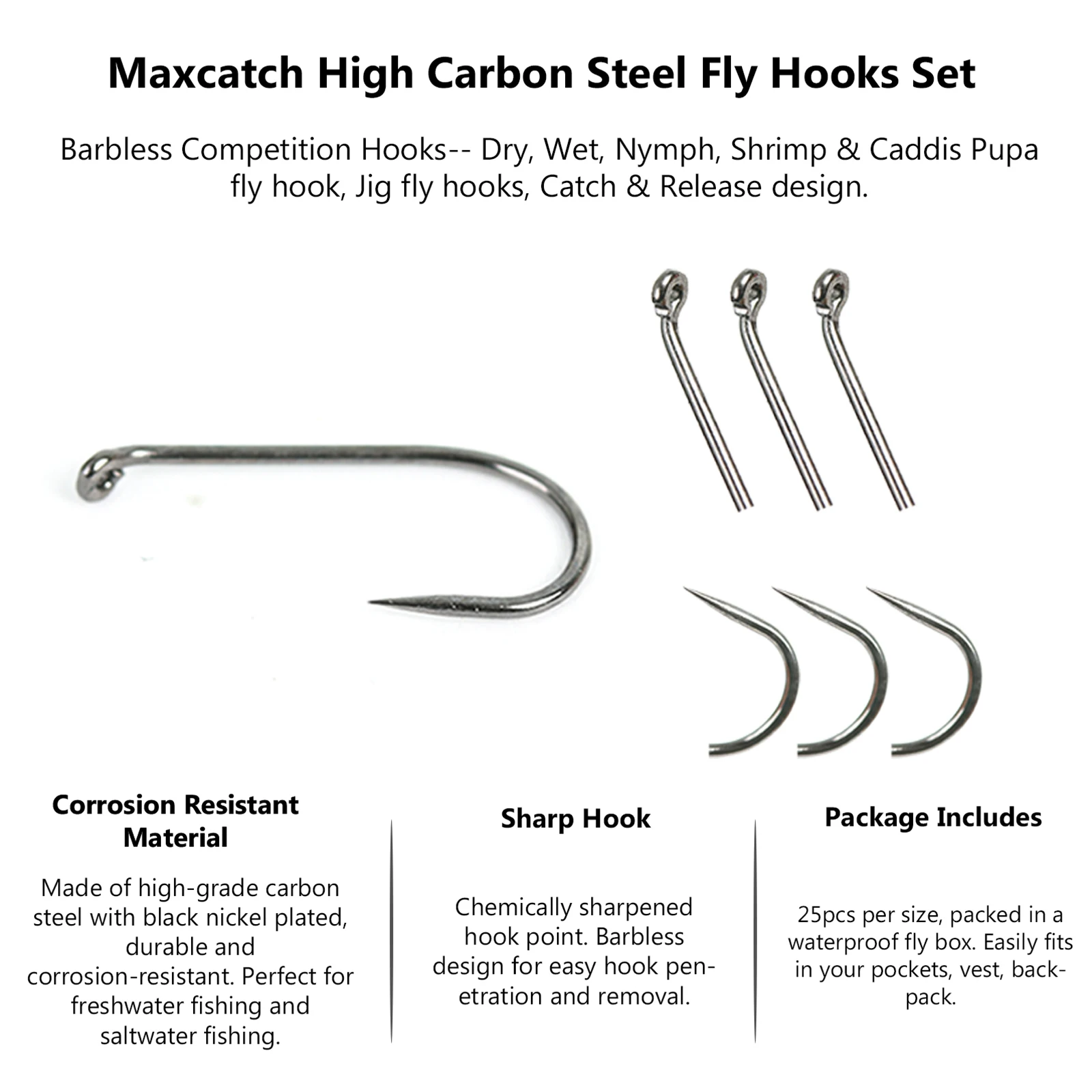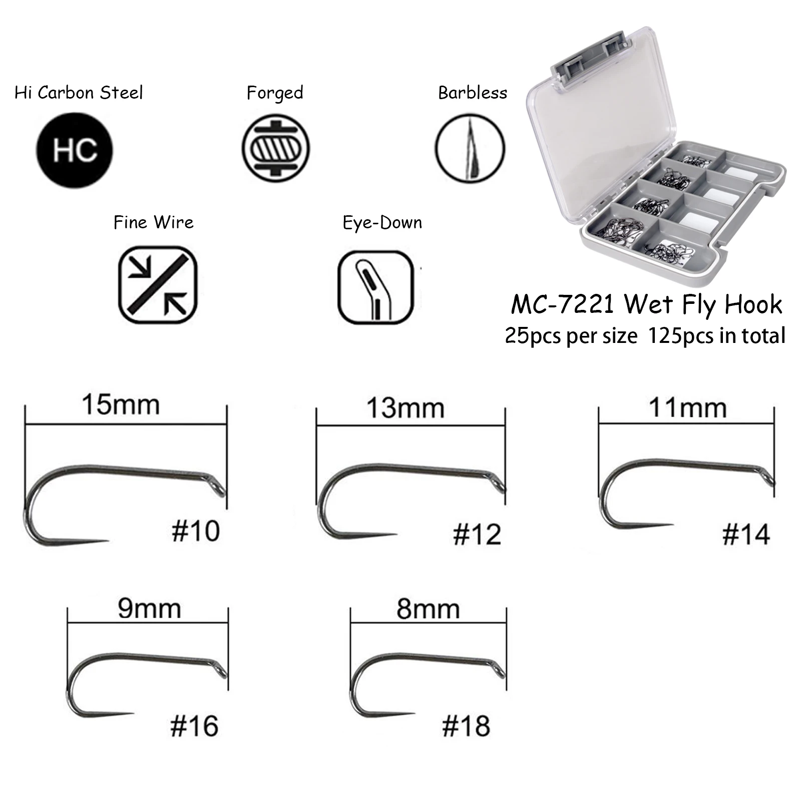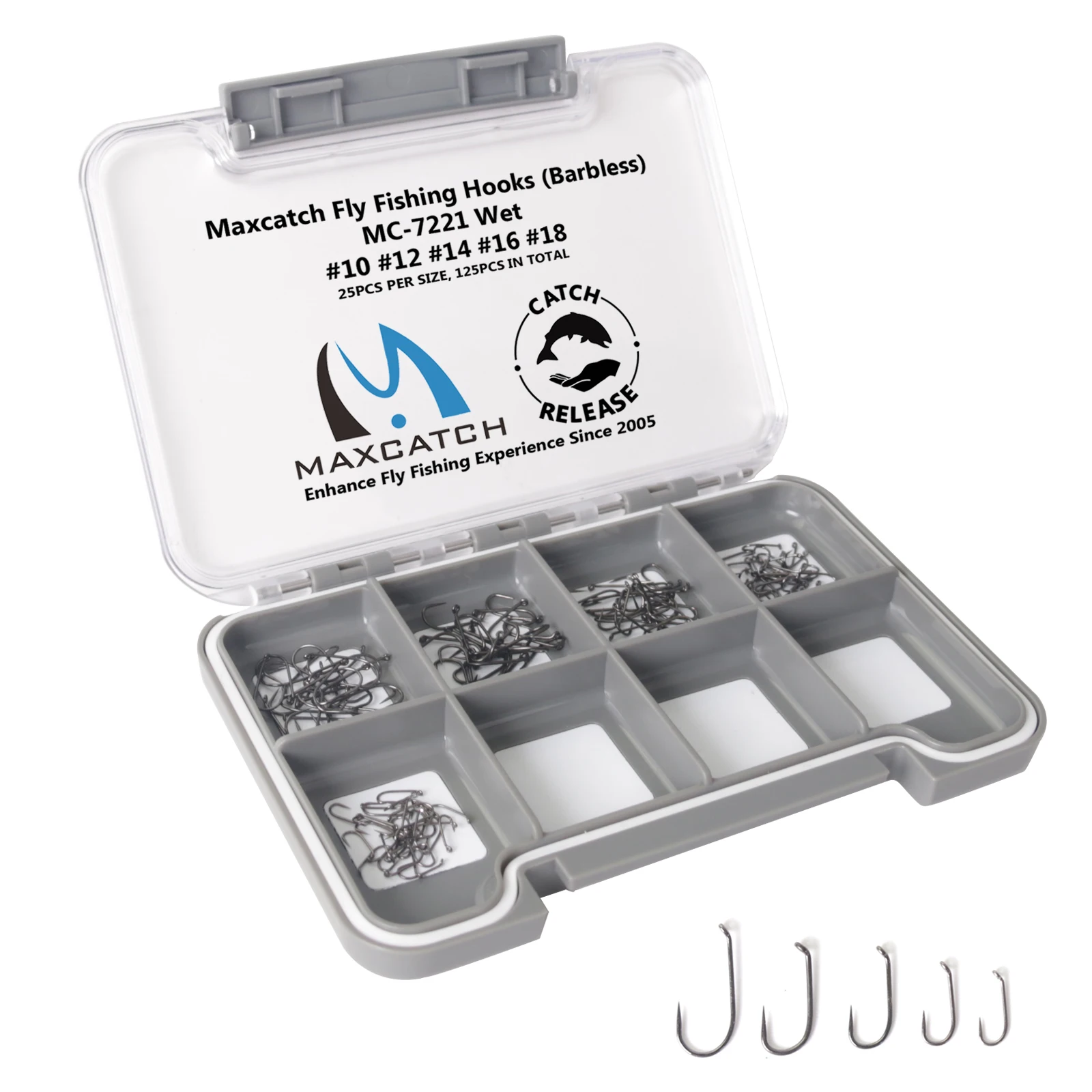 Maximumcatch, 125 шт., 6 #8 #10 #12 #14 #16 #18 #, Безразмерные рыболовные крючки для ловли искусственных мушек, набор джиг-Нимфа, кованые черные никелевые рыболовные крючки