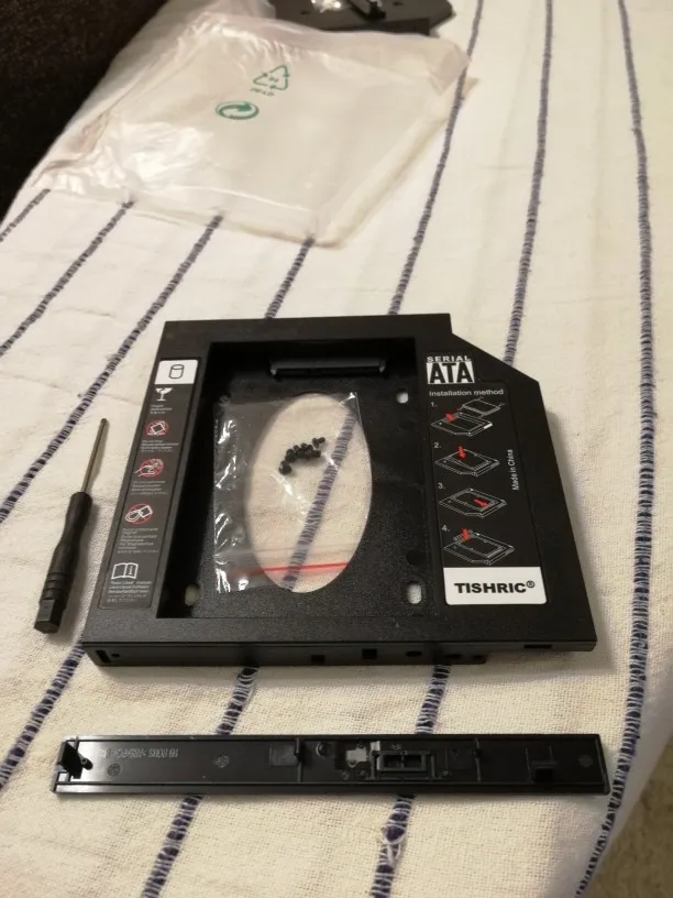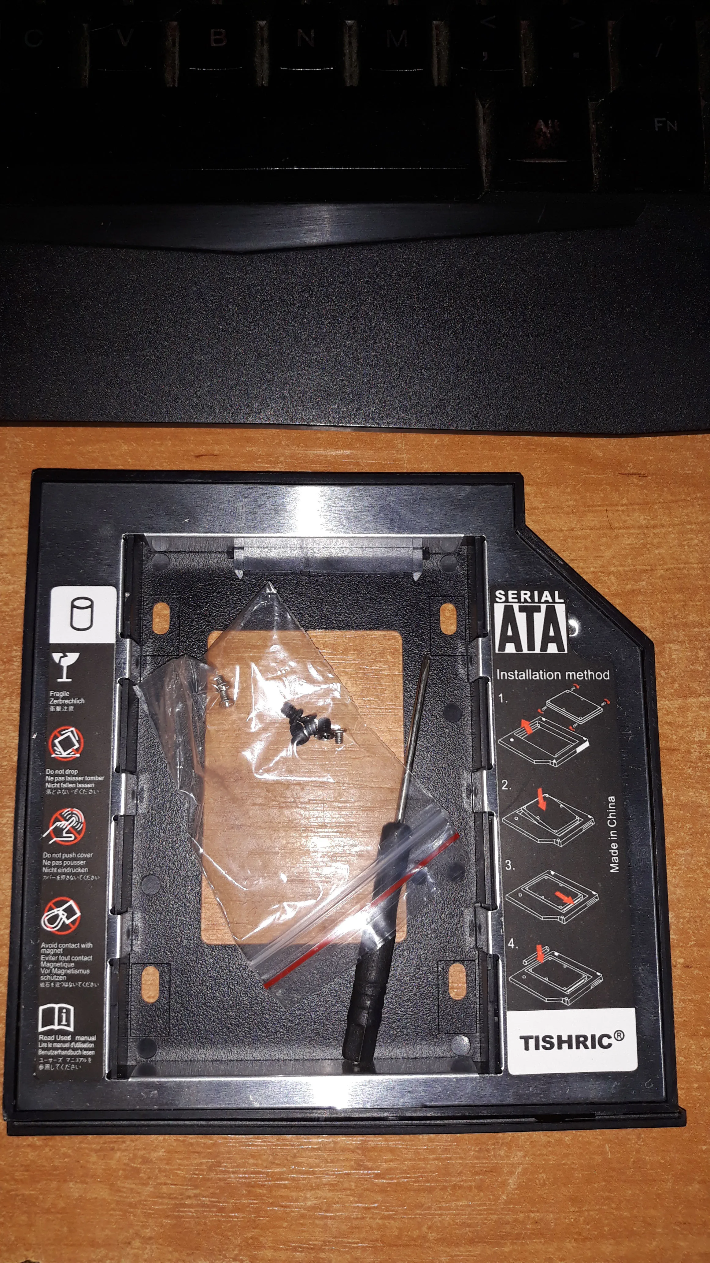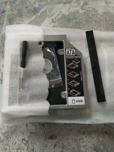 01.01.21 сделала заказ, 18.01.21 прибыл на почту. Товар обмотан паралоном. Подошёл, но был дефект - отломанное крепление лицевой панельки, видимо в связи с транспортировкой. Один винт для фиксации HDD не закручивается. Лицевая панель от ноутбука полностью не фиксируется. В других аспектах - все подошло. На фото уже с моим HDD