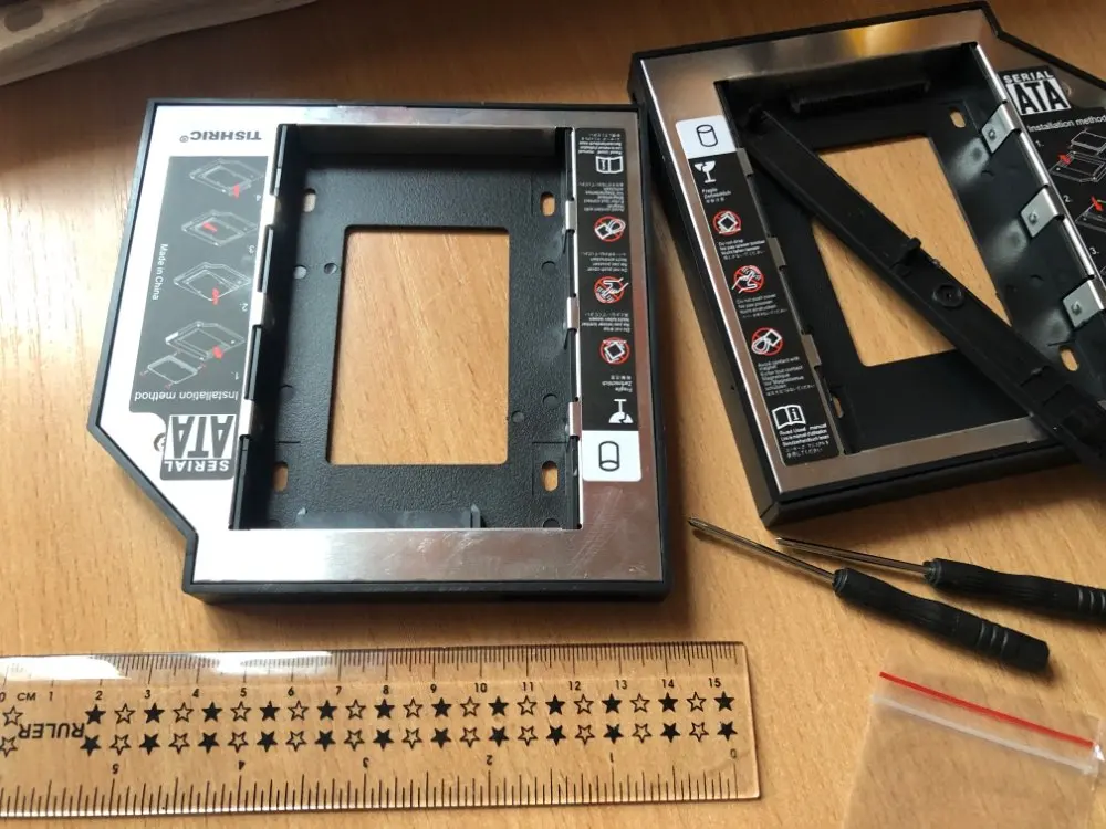 Вставил вместо dvd-romа, hd 500 gb - автоматически установились драйвера, всё работает. Планку пластиковую оставил старую, она фигуристая по ноутбуку, крепежи на планке идентичные.