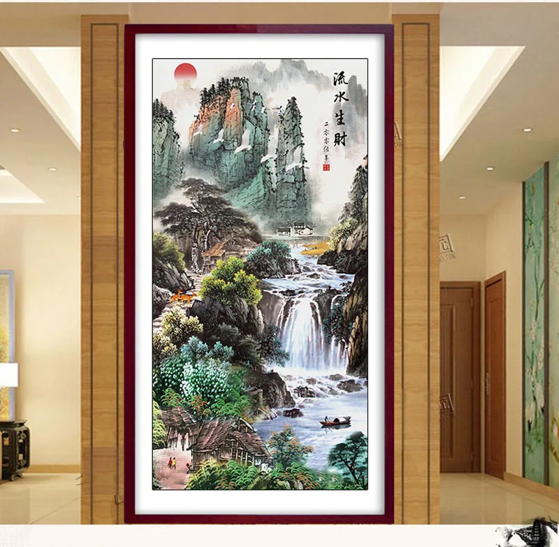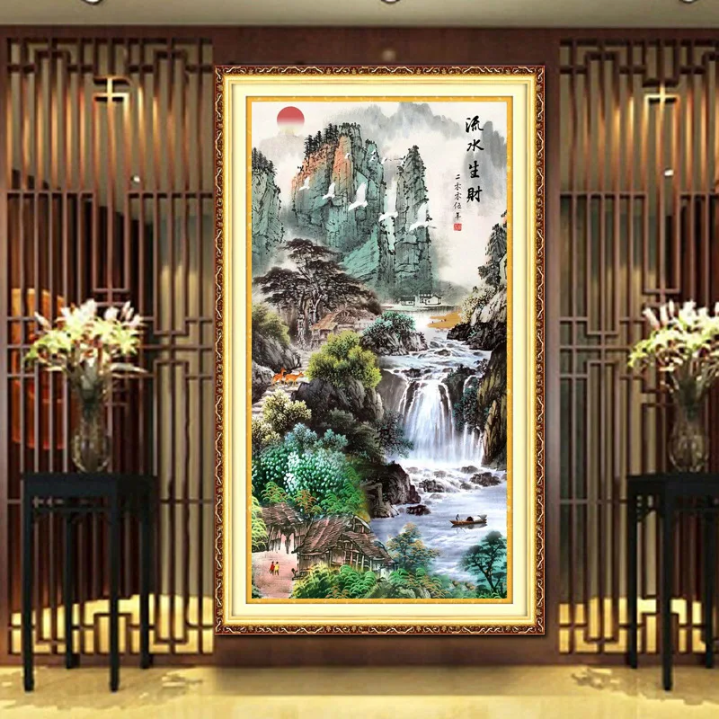 Вышивка QIANZEHUI для творчества, Высококачественная картина с изображением пейзажа, с изображением природы и богатства, вышивка крестиком, серия пейзажей