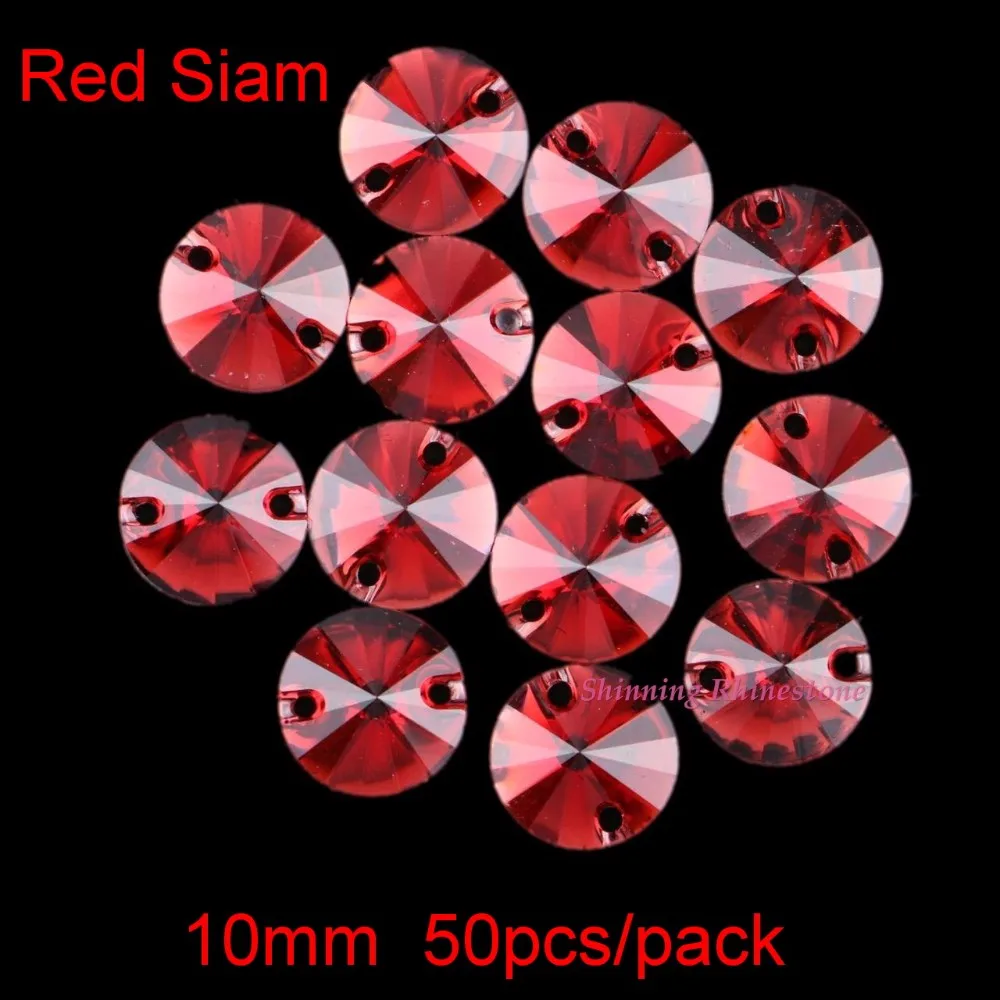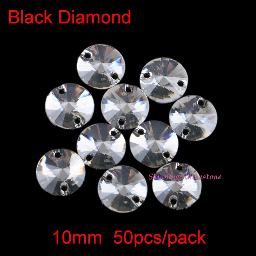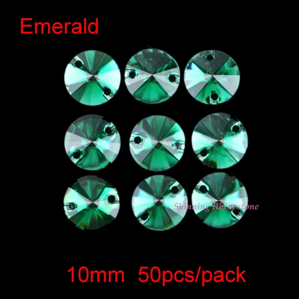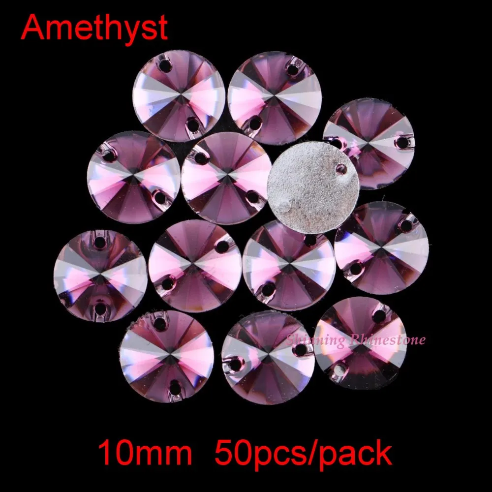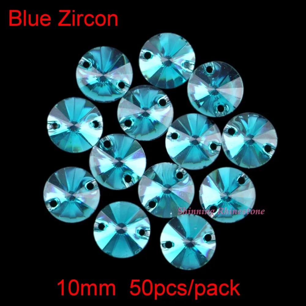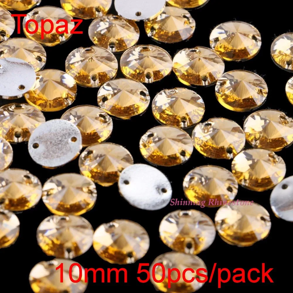 Круглые стразы для шитья, 10 мм, 50 шт., с двумя отверстиями, 10 цветов на выбор