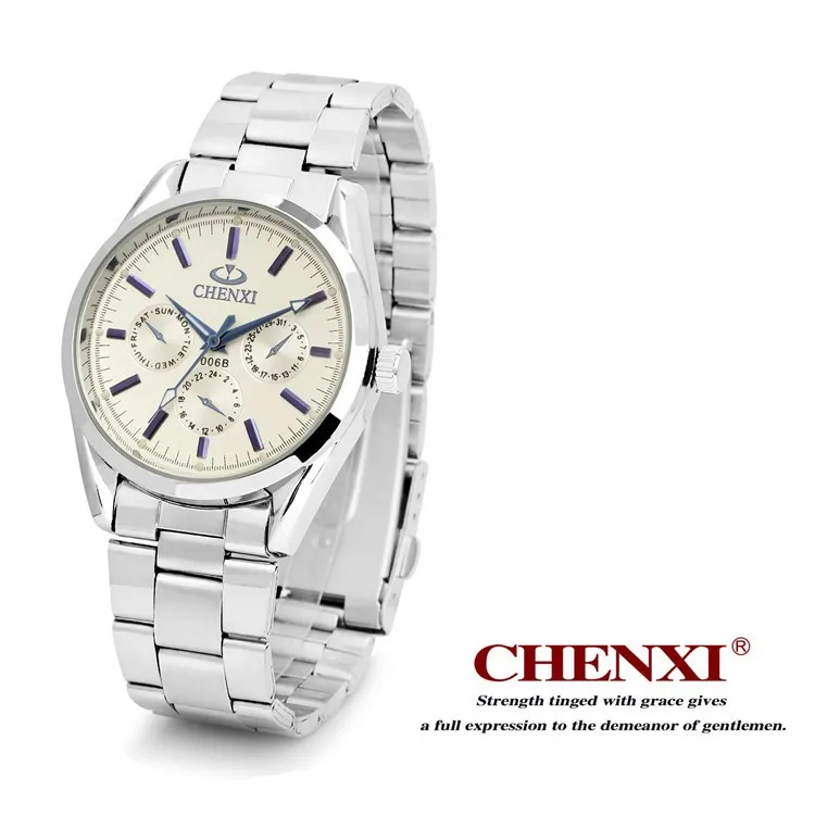 CHENXI брендовые Роскошные Кварцевые наручные часы с 3 маленькими декоративными циферблатами, парные часы, серебряные часы из нержавеющей стали для мужчин и женщин