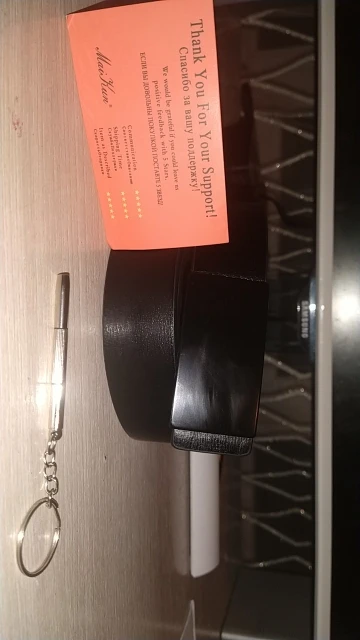 Ремень классный, наверняка не кожа. В подарок продавец положил мини отвёртку.