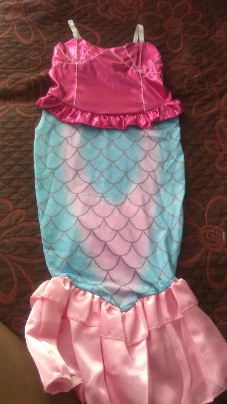 отличный костюм русалочки, всё соответствует и размер и всё детали костюма, расцветка , швы ровные, ребёнок был в восторге, на 3 года размер 4т отлично,