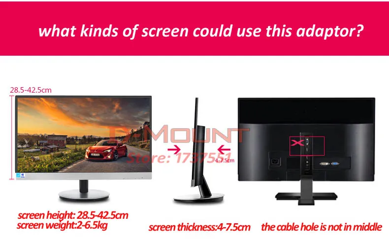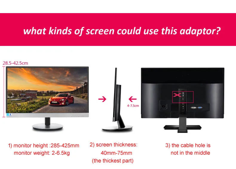 Для экрана без отверстий VESA (если у вашего экрана есть отверстие VESA, пожалуйста, выберите наш F80, спасибо)