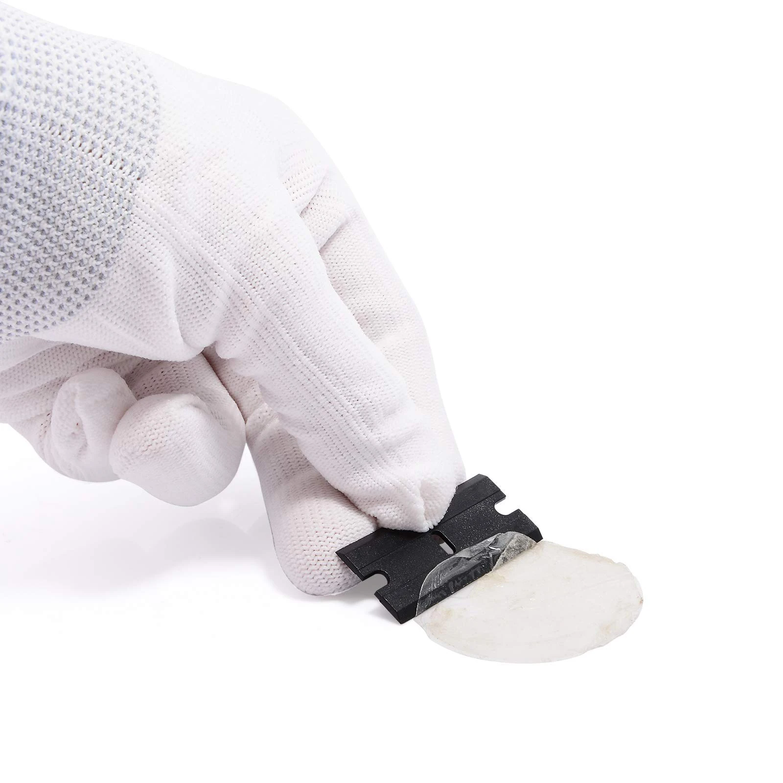 Безопасный-острые Пластиковые лезвия бритвы, что является 1,5 см в ширину, чтобы удалить наклейки из машин, пластик, внедорожники, деревянные Basketall судов, стеклянные витриныНадежный-проверенный 100 двойной окантовкой бритвенный дизайн, чтобы получить под краем наклеек и достаточно захватывающий мощности, чтобы снять наклейкиДлительный срок службы-поставляется со 100 пластиковыми краями лезвий бритвы, поэтому срок службы сохраняется. Безопасно использовать и не режет пальцыЖесткий-получить под самые жесткие автомобильные наклейки и наклейки. Лезвия для бритвы с двойными краями созданы для жестких работИдеально подходит для использования в дополнение к колесная наклейка инструмент для удаления