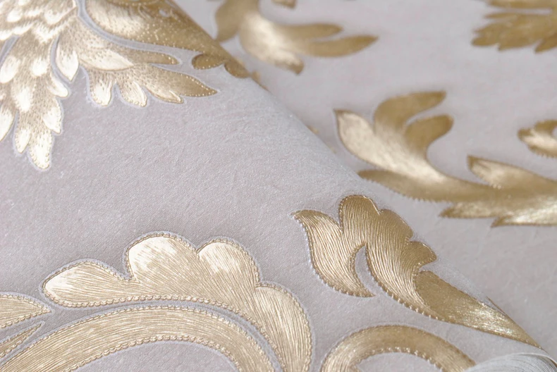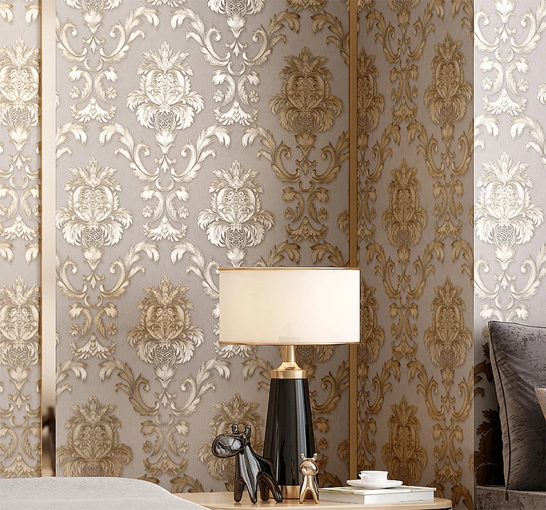 Бежево-серые золотистые текстурированные роскошные классические обои из дамасской ткани для спальни, гостиной, домашнего декора, водостойкие виниловые обои из ПВХ