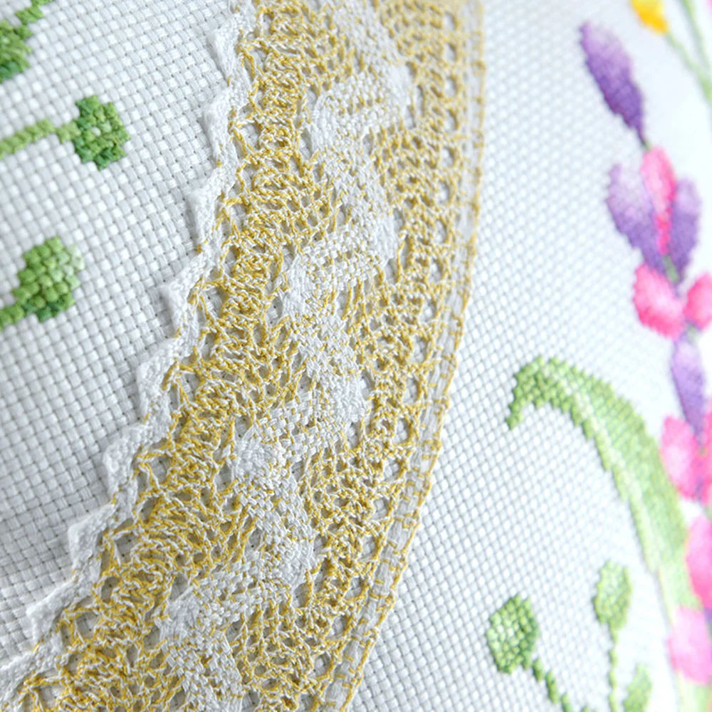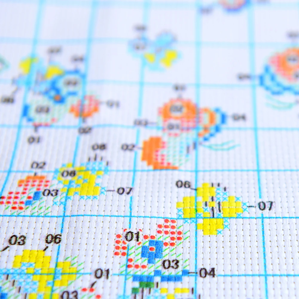 Не стирайте деталь до тех пор, пока она не будет полностью прошита; Стирка снимет штампованный дизайн, необходимый для вышивки крестом.