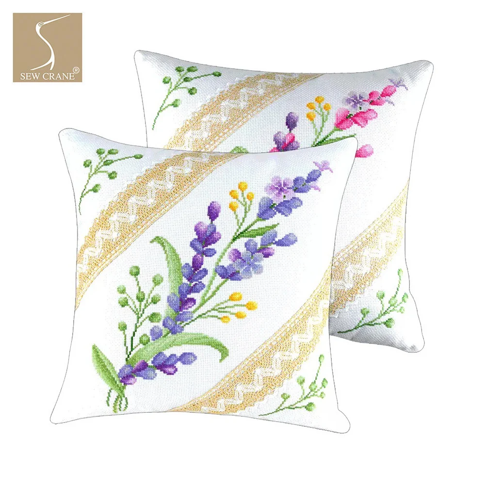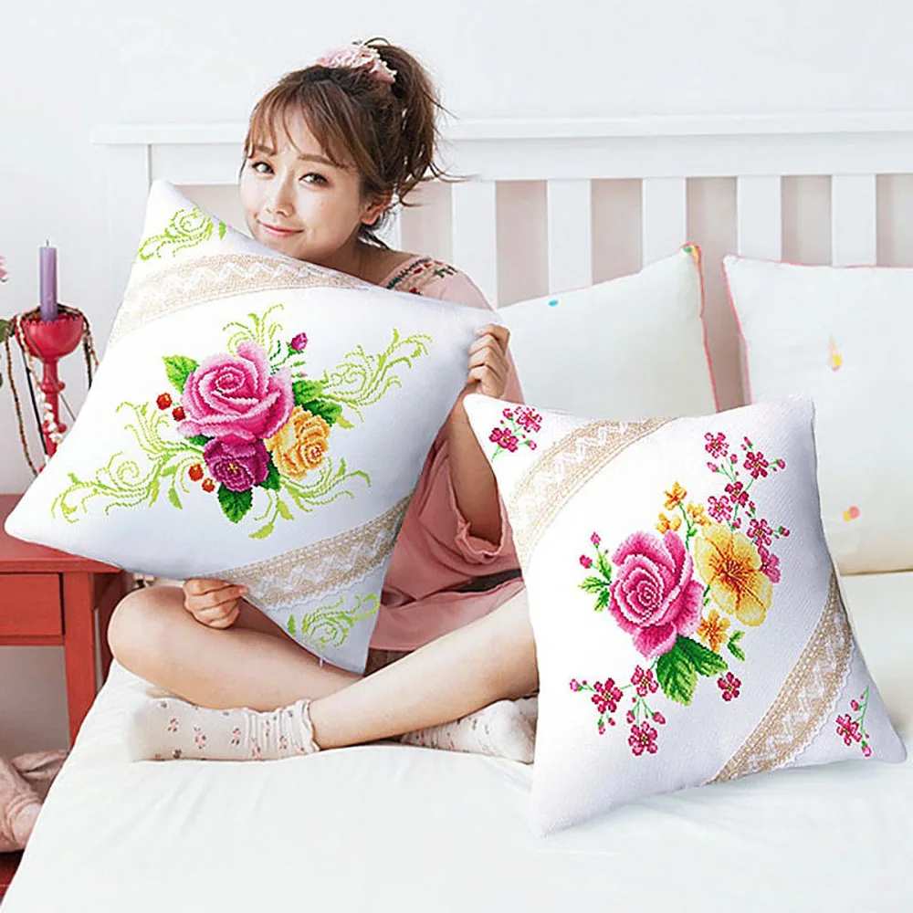 Наволочка для подушки с изящными цветами, Набор для вышивания, профессиональная прошивка стежком, дизайн напечатан на смываемая краска на ткани, легко читается и прошивается, заботится о ваших глазах.