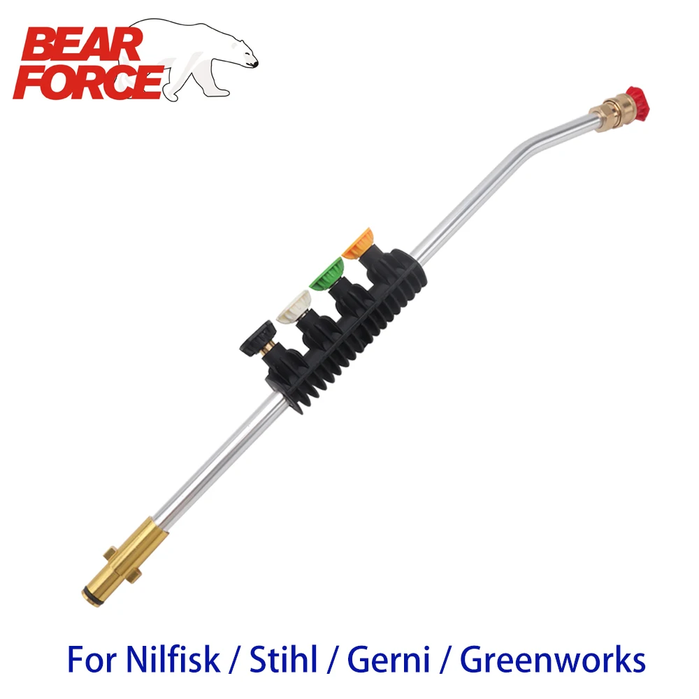 Металлическая Насадка 50 см с Nilfisk aDaptor, 5 быстрых насадок (0 °, 15 °, 25 °, 40 °, мыло), вращающееся сопло (опционально) и поворотный разъем (опционально), прекрасно работает с мойками под давлением Nilfisk/STIHL, которые сделают мощную струйную силу и подарят вам профессиональные ощущения.