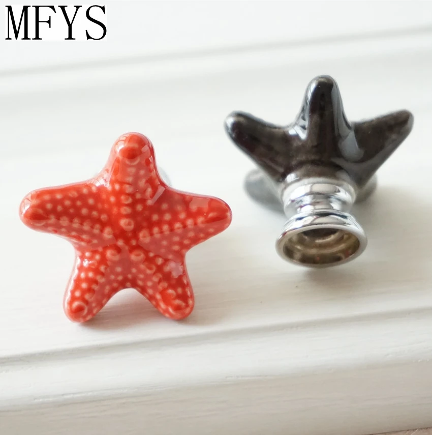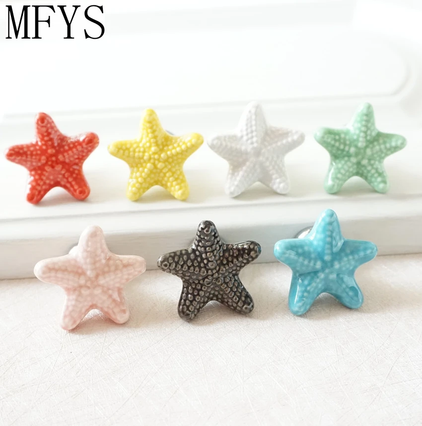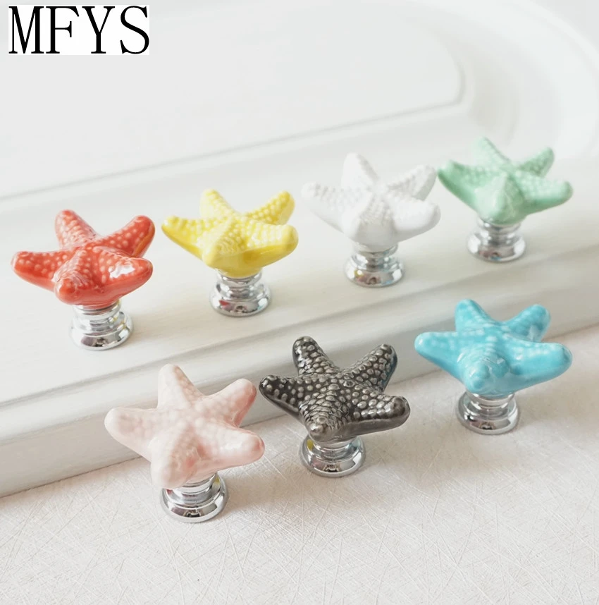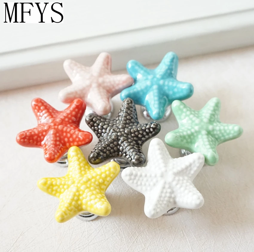 Керамические цветные ручки для кухонного шкафа, декоративная ручка в виде морской звезды, красная, розовая, желтая