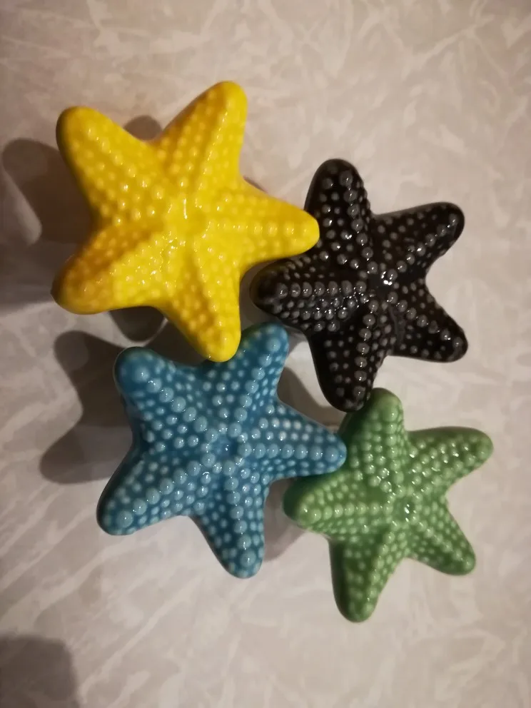 Изделие идеально соответствует описанию и цвету: Эти кнопки с выдвижными ящиками в форме морских звезд очень красивые и яркие с 3d-эффектом благодаря рельефам. Винт предоставлен и спасибо продавцу, который разместил еще 1. Отличное соотношение цены и качества, быстрая и безопасная доставка благодаря хорошей упаковке, я действительно очень доволен своей покупкой и рекомендую! :)