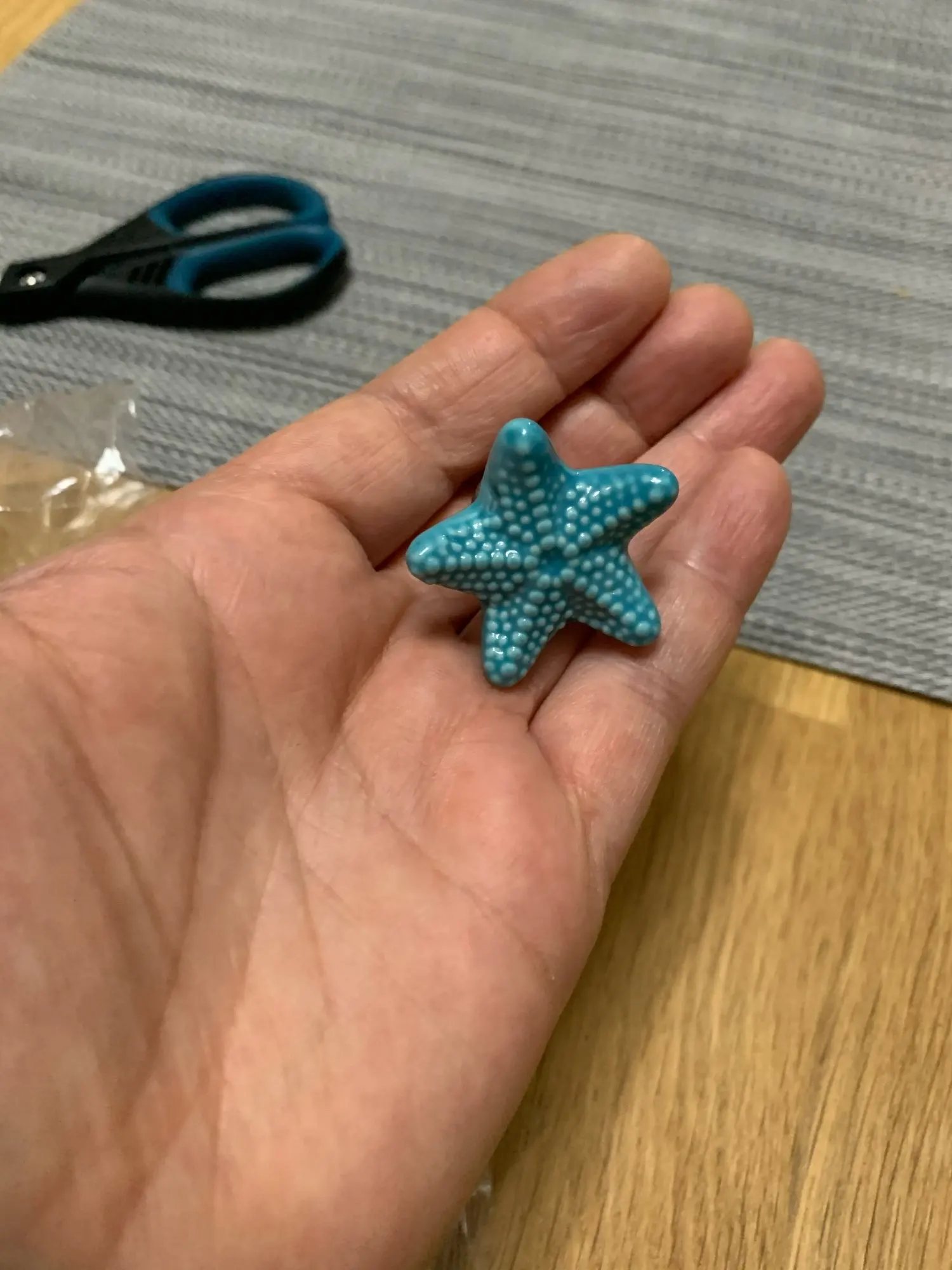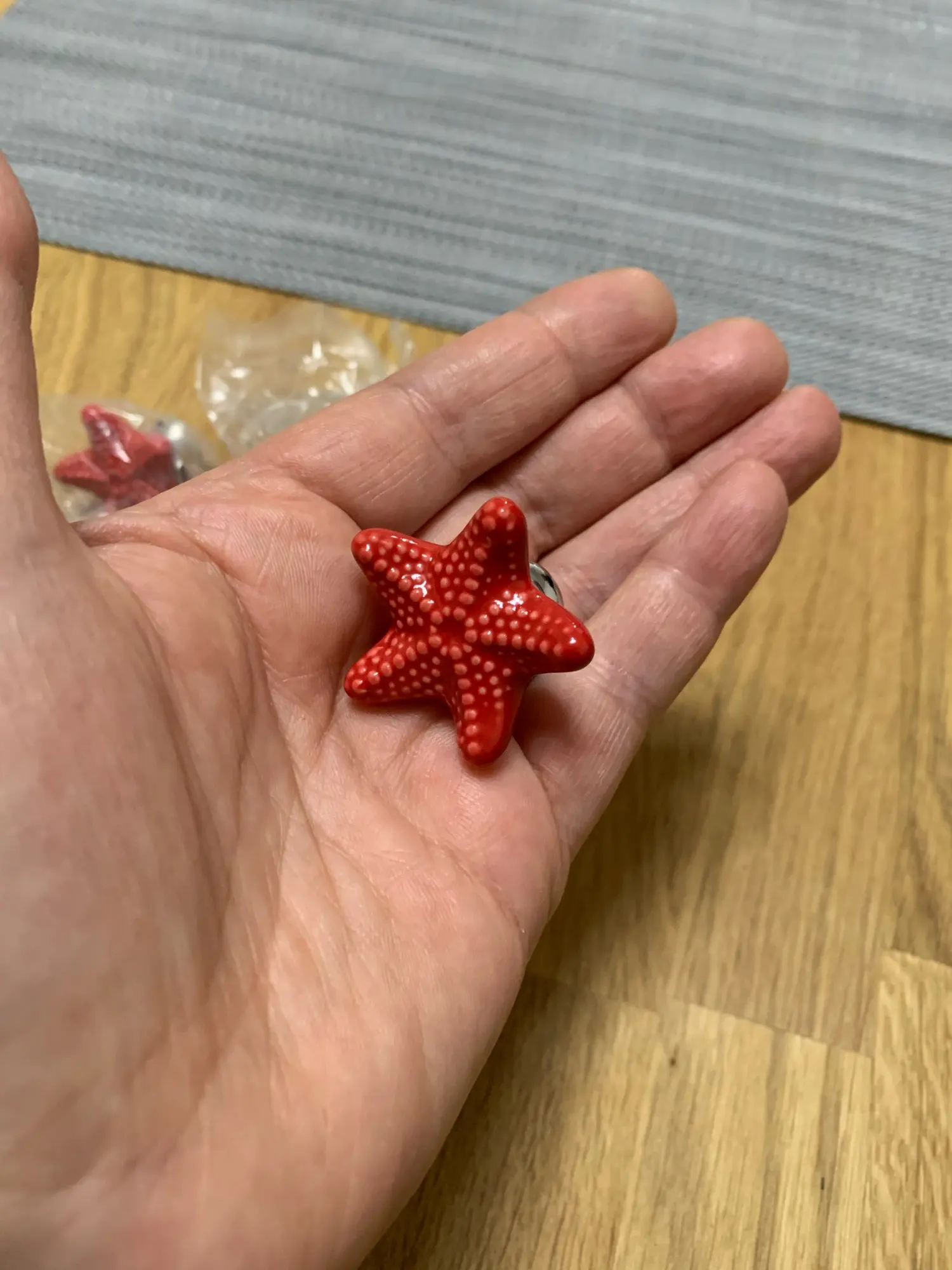 Изделие идеально соответствует описанию и цвету: Эти кнопки с выдвижными ящиками в форме морских звезд очень красивые и яркие с 3d-эффектом благодаря рельефам. Винт предоставлен и спасибо продавцу, который разместил еще 2. Отличное соотношение цены и качества, быстрая и безопасная доставка благодаря хорошей упаковке, я действительно очень доволен своей покупкой и рекомендую! :)