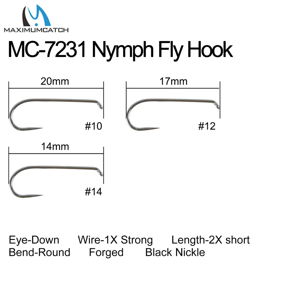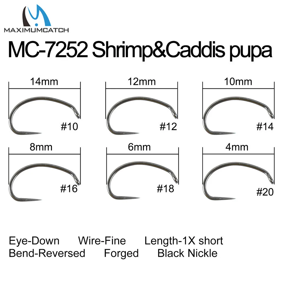 Maximumcatch 100 шт., безблокирующий крючок для завязывания мушек с глазами для рыбы, 10 #12 #14 #16 #18 #, сухие и влажные, Нимфа и креветки, джиг-Крючки Caddis Pupa
