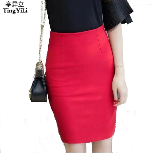 TingYiLi классическая красная черная юбка-карандаш, элегантная Офисная Женская Короткая юбка для работы, 3XL, 4XL, 5XL, Женская мини-юбка большого размера с высокой талией