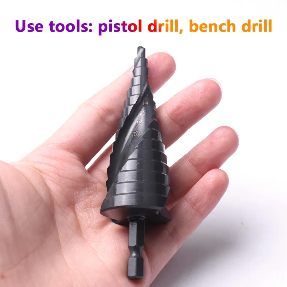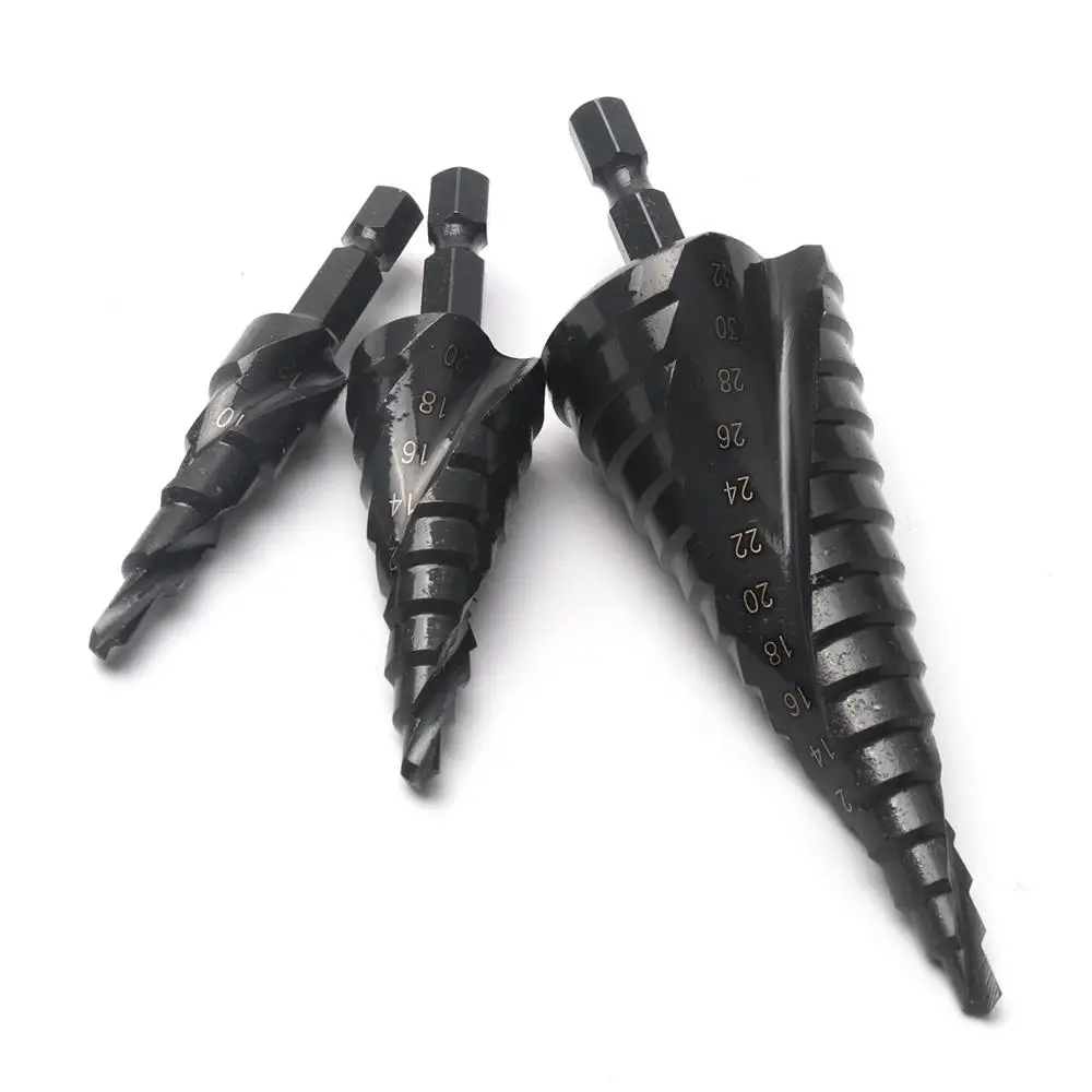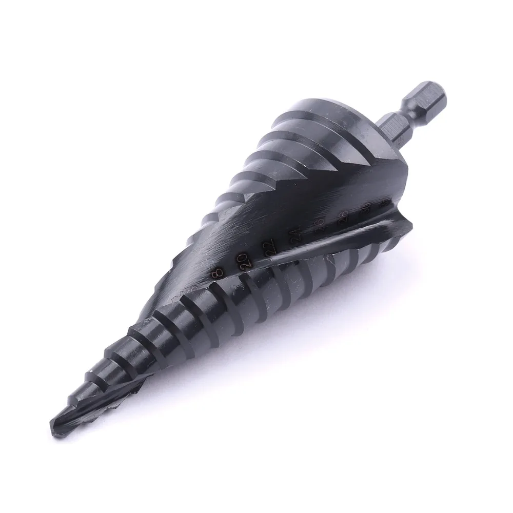Ступенчатое Коническое сверло из быстрорежущей стали, 4-122032 мм, бит шестнадцатеричный хвостовик, нитридное покрытие для сверления отверстий по деревуметаллу, ступенчатое сверло со спиральными канавками