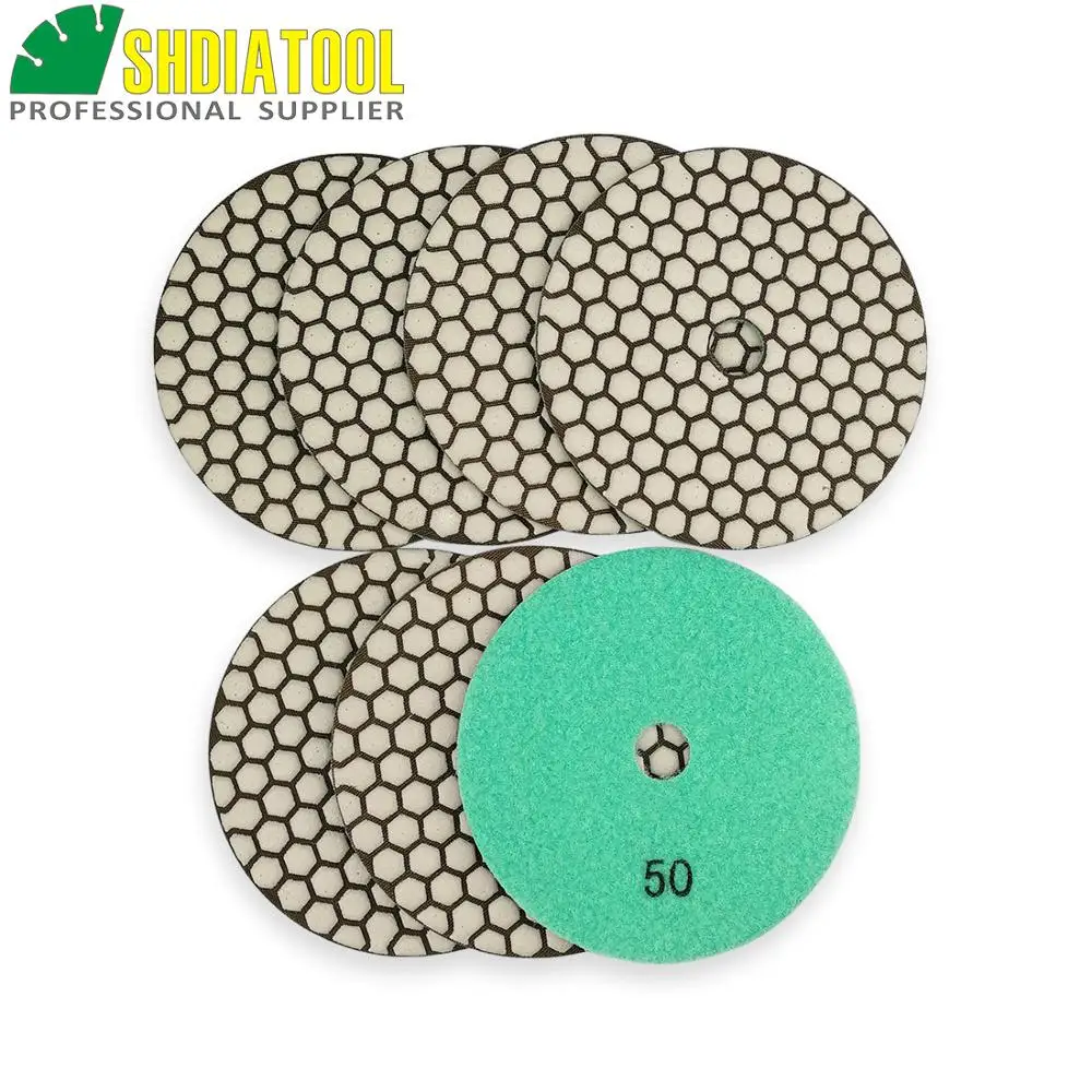 SHDIATOOL 7 шт. 5 дюймов Алмазные Гибкие Полировальные колодки #50 гранит мрамор керамика шлифовальный Сухой шлифовальный диск dics полировальный диск